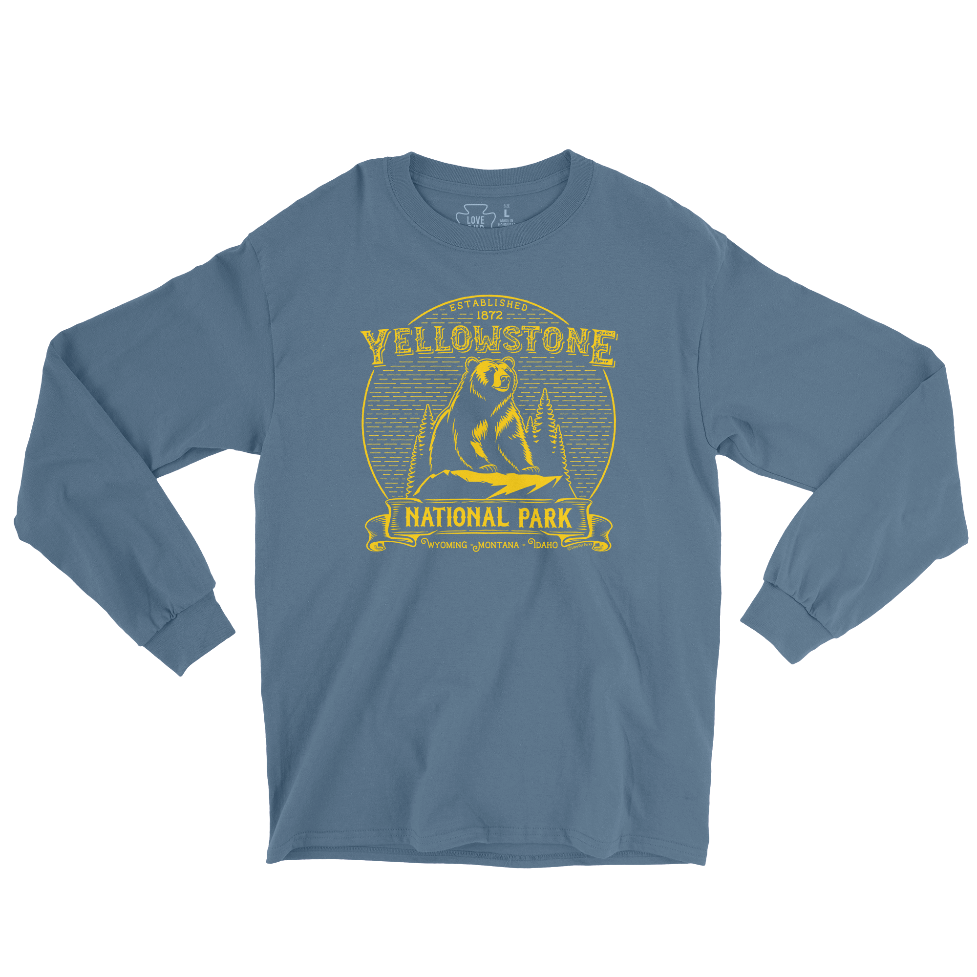 Hike, camp or just relax in style with our vintage inspired long sleeve tee shirt while showing some love for America's first national park - Yellowstone National Park!