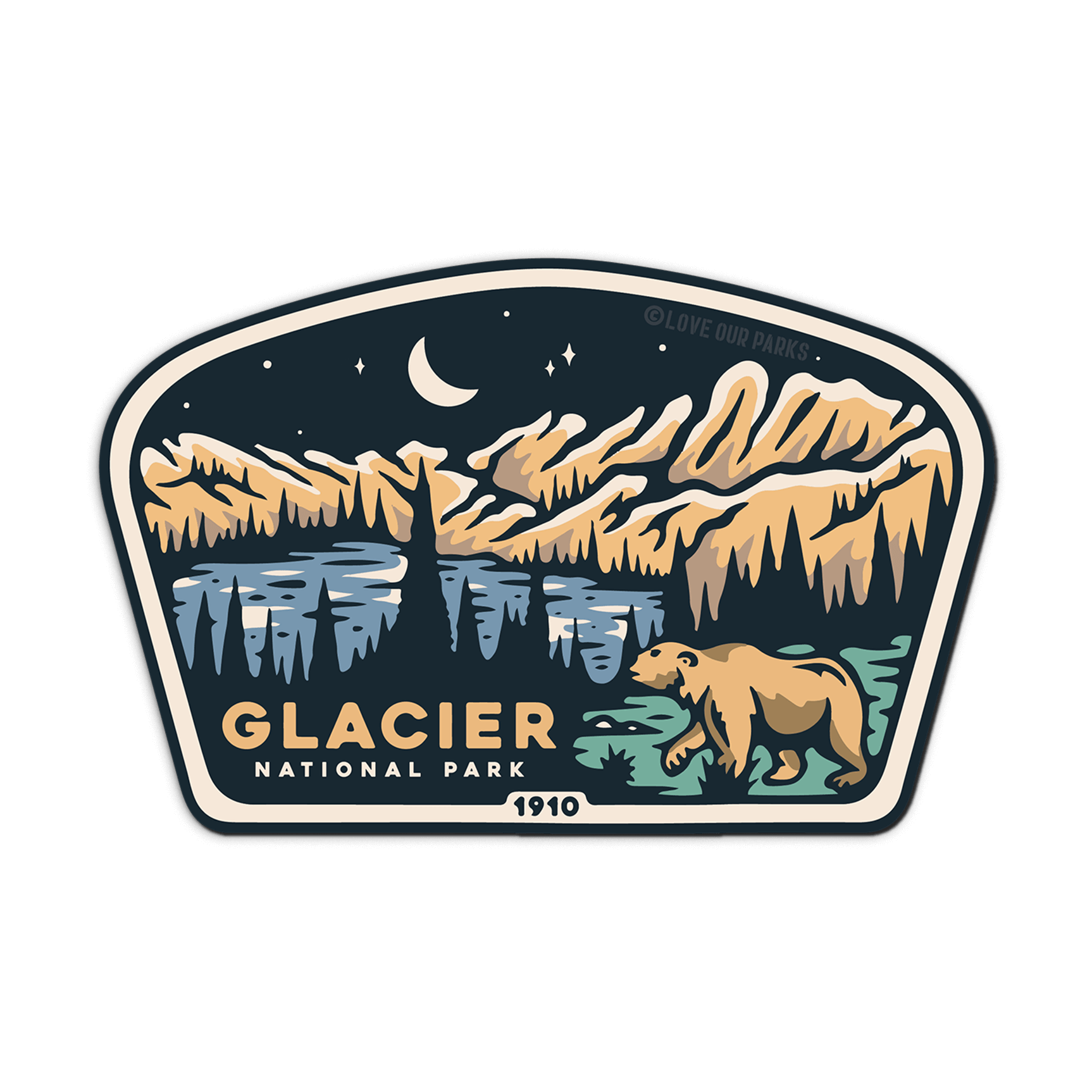 Show off your love of Glacier National Park with this retro inspired sticker! Made to last with waterproof material, it features a bear and the year the park was established. Perfect for water bottles, laptops, and more. Get yours today and show off your love for this majestic park!