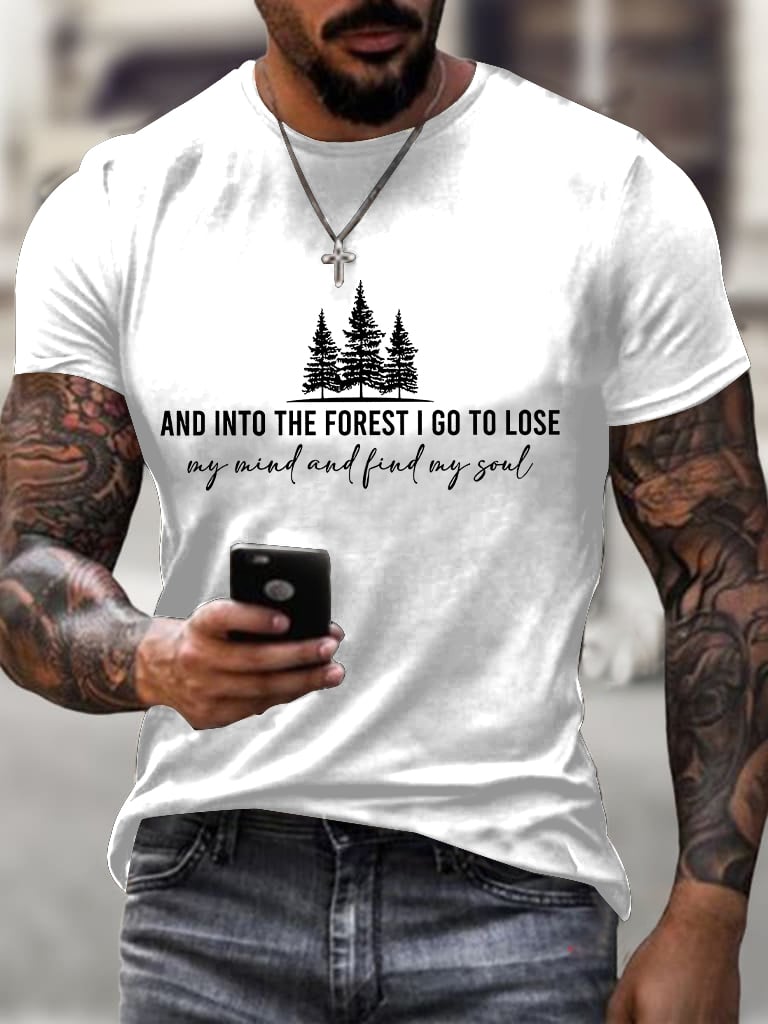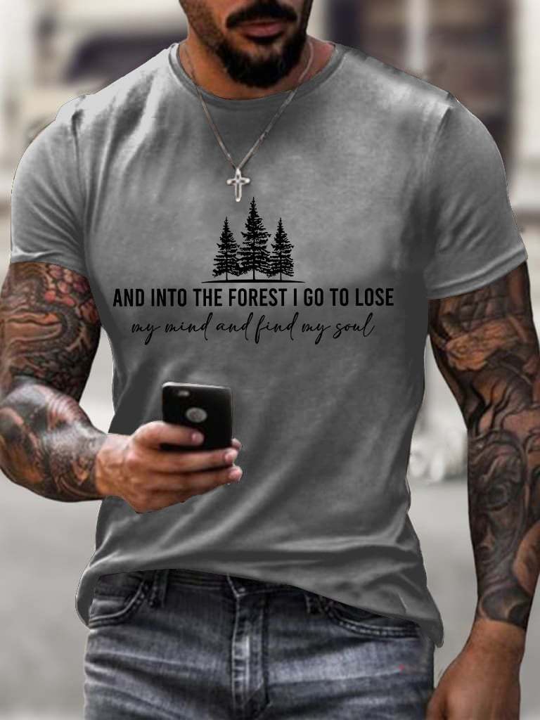 Men Retro Hiking Outdoors Camping And Into The Forest I Go To Lose My Mind And Find My Soul Printed Short Sleeve Top