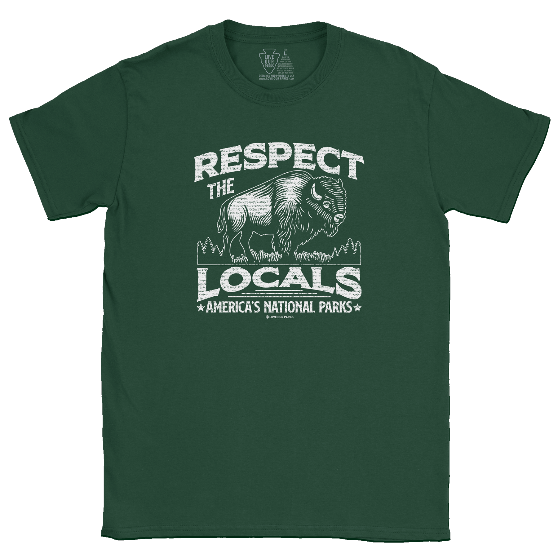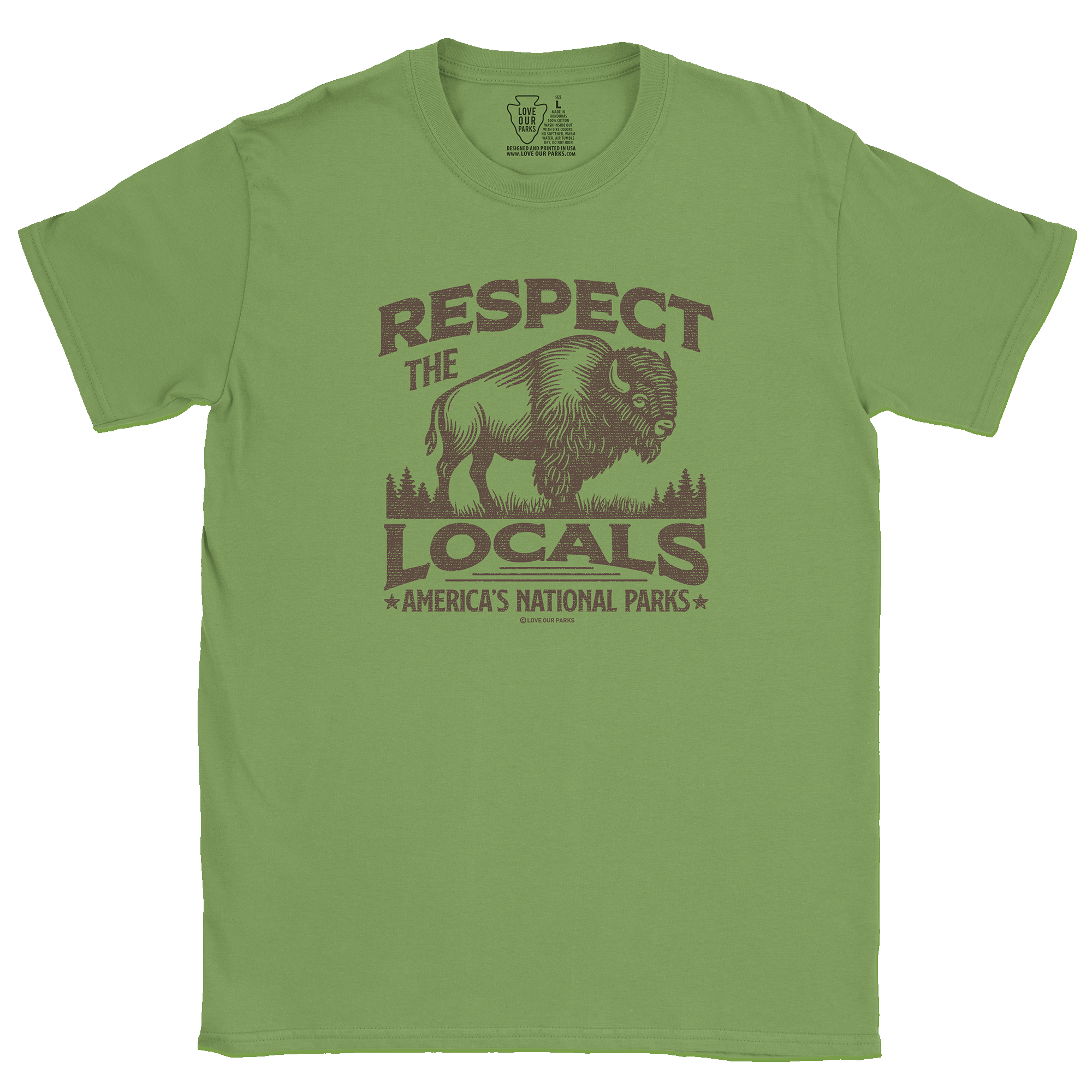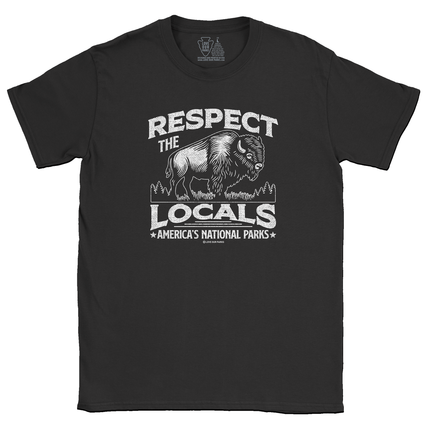 Embrace your love for nature with our Respect The Locals Bison Tee. Made from 100% cotton, this tee features the message "Respect The Locals - America's National Parks".