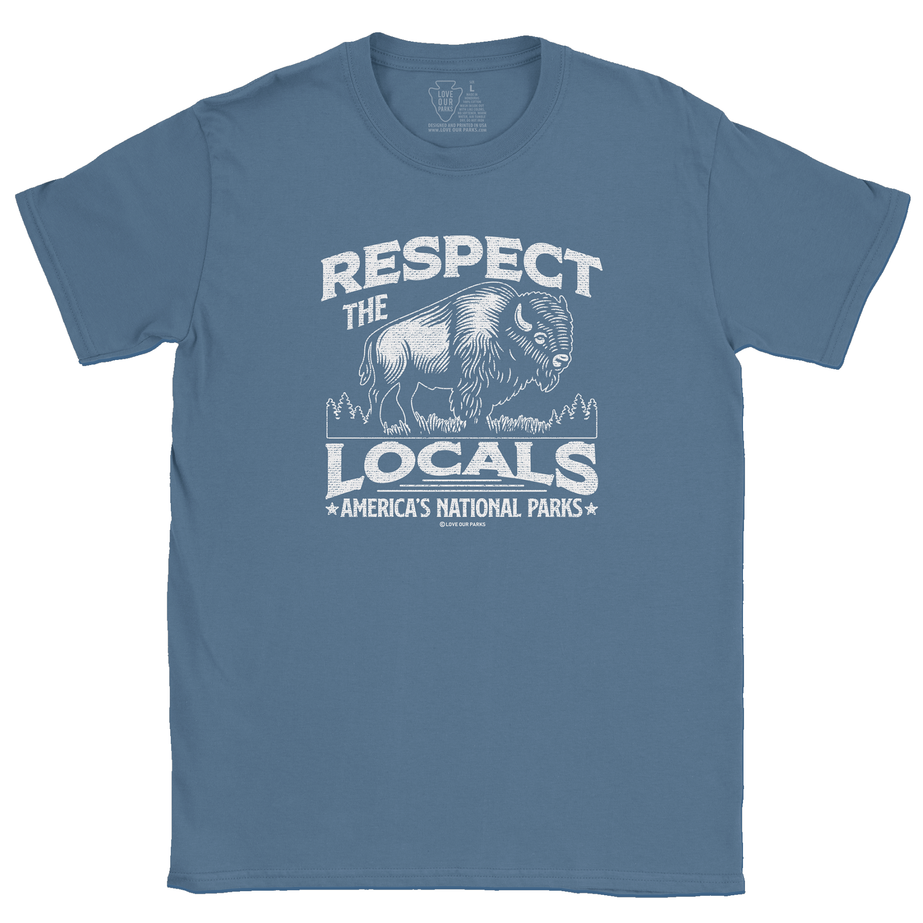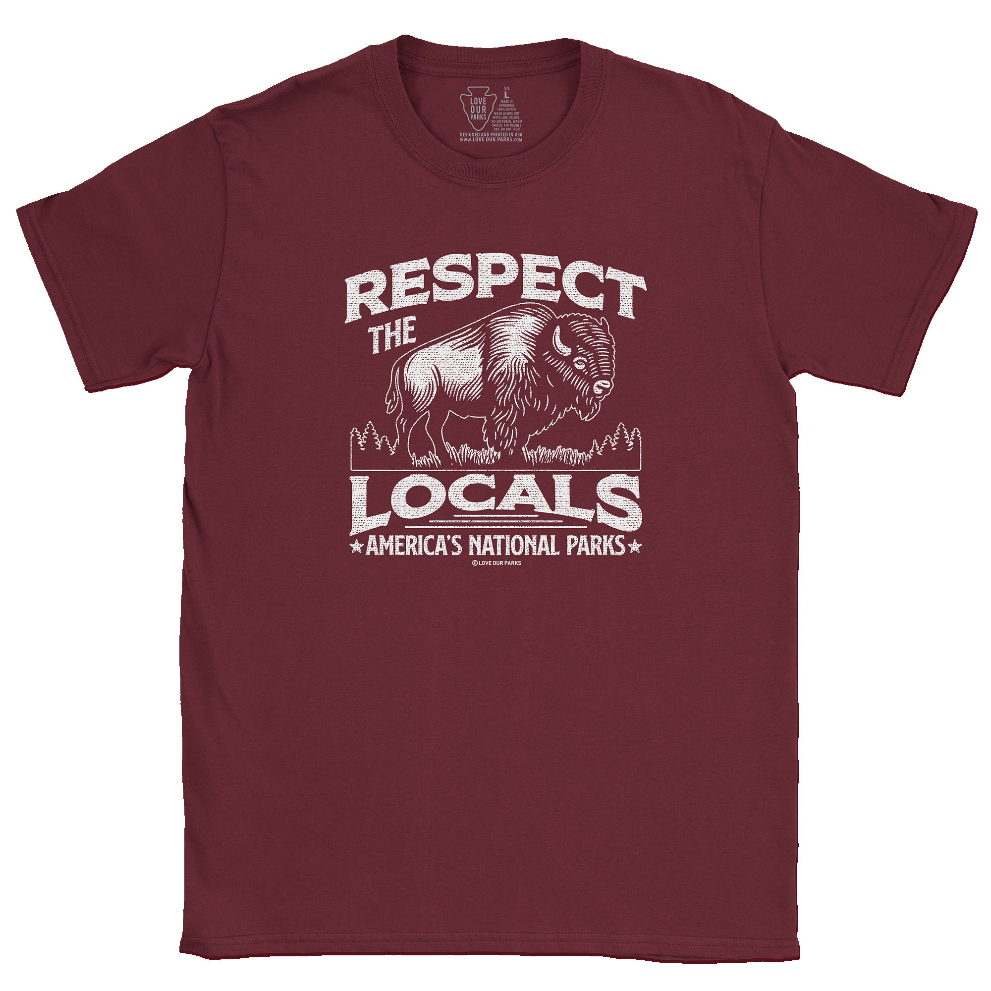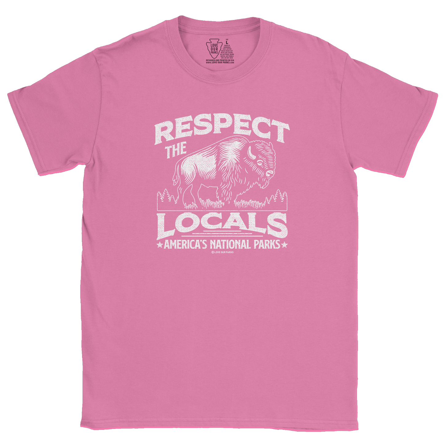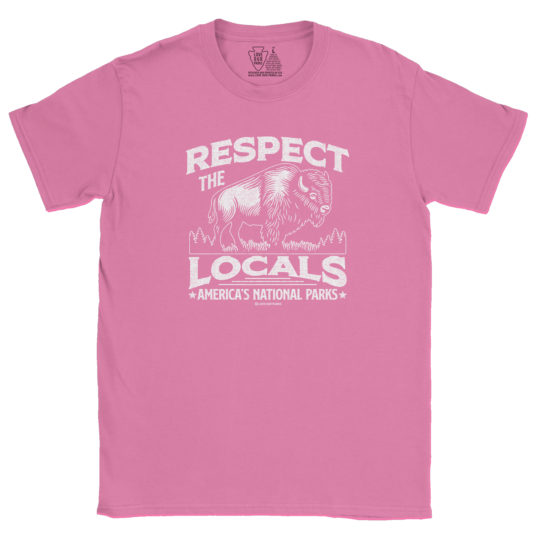 Embrace your love for nature with our Respect The Locals Bison Tee. Made from 100% cotton, this tee features the message "Respect The Locals - America's National Parks".