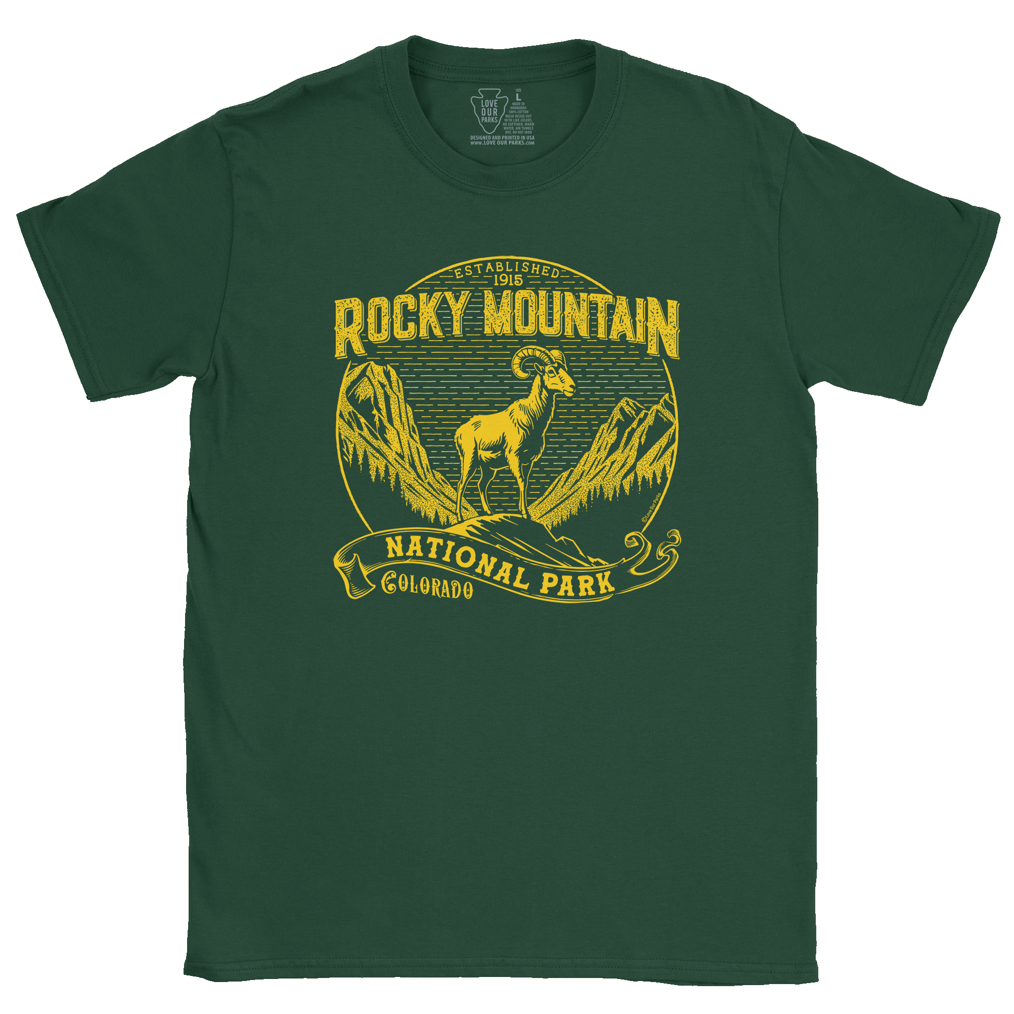 Hit the great outdoors or hang out in town in our vintage inspired tee shirt featuring Colorado’s Rocky Mountain National Park!