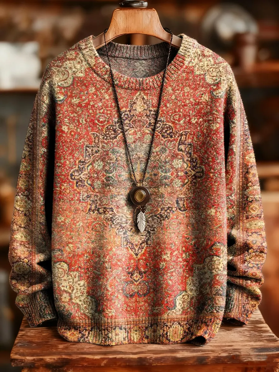 Unisex Retro Ethnic Totem Art Print Crew Neck Knit Sweater