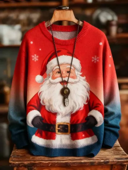 Unisex Santa Claus Art Print Crew Neck Knit Sweater