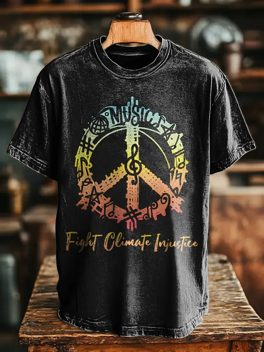 Hippie Music Gradation Unisex Vintage Art Print Casual T-shirt