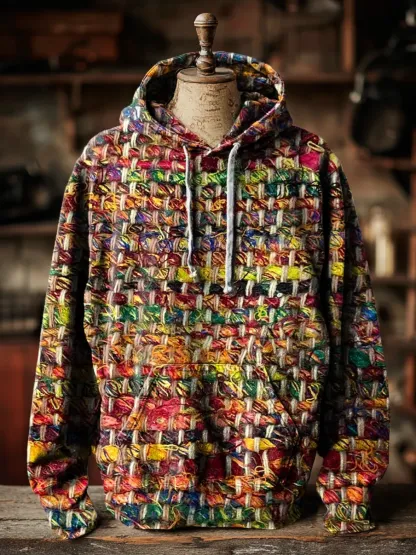Unisex Ethnic Woven Textured Art Print Pocket Hooded Sweatshirt
