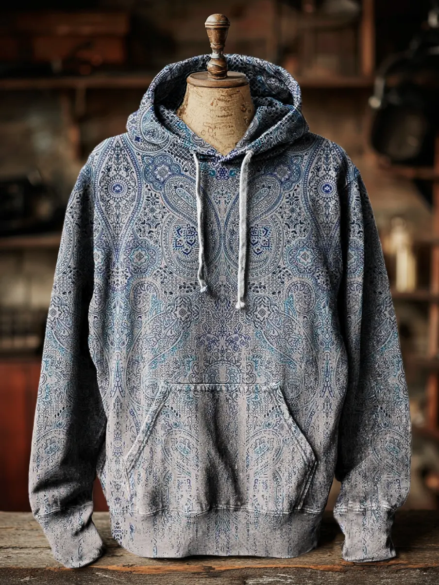 Unisex Gradient Paisley Print Pocket Hoodie