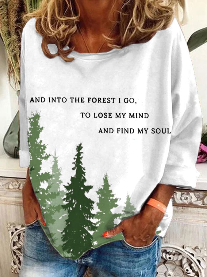 Women's Retro Hiking Outdoors Camping And Into The Forest I Go To Lose My Mind And Find My Soul Printed Casual Long Sleeve T-Shirt