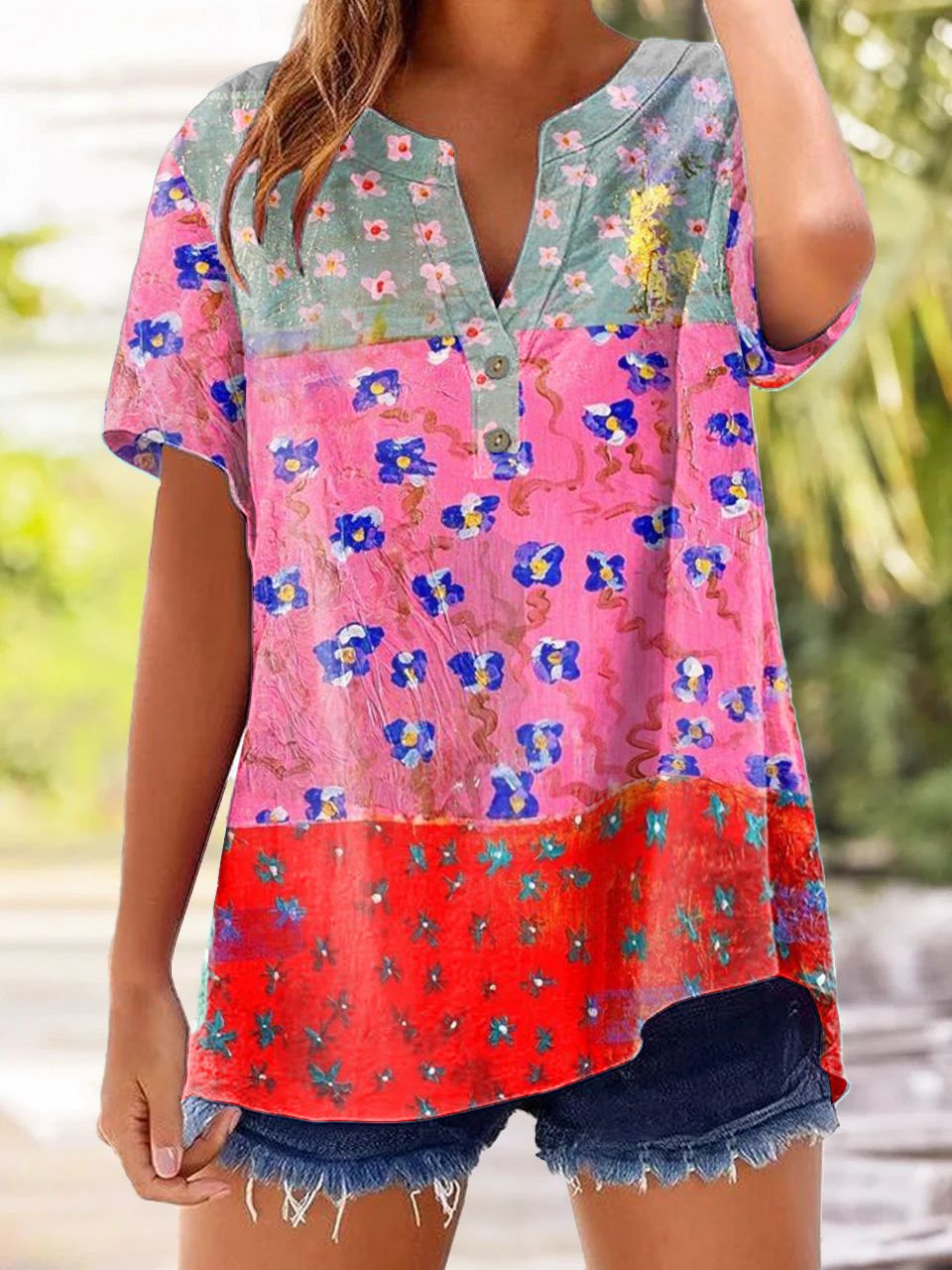 Women's Forest Floral Print V-Neck Top