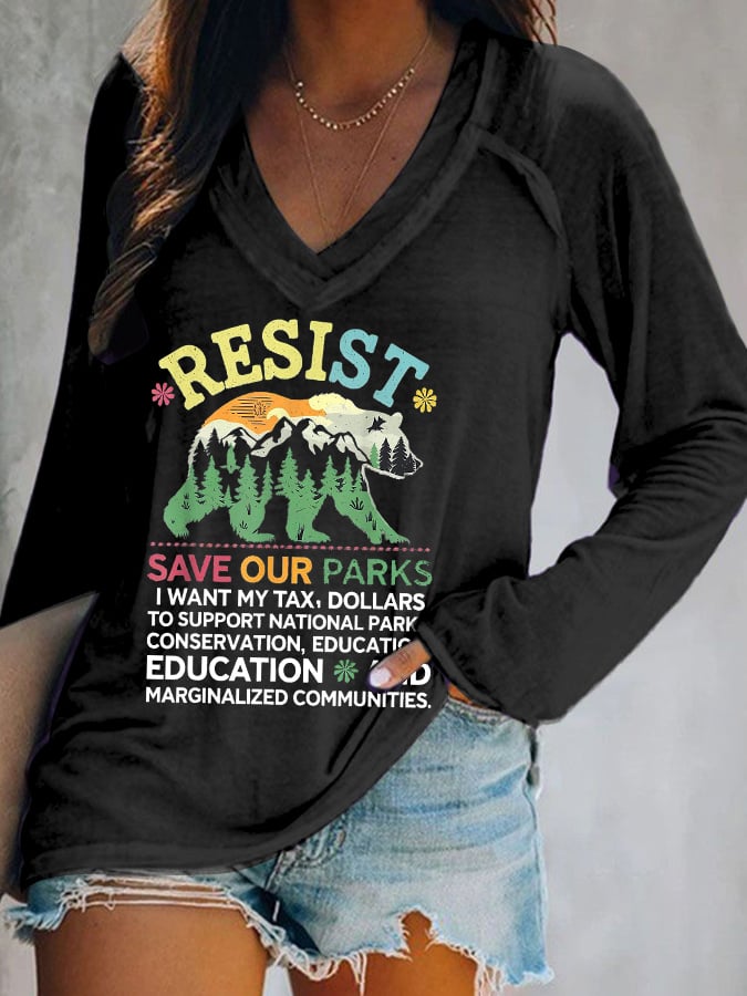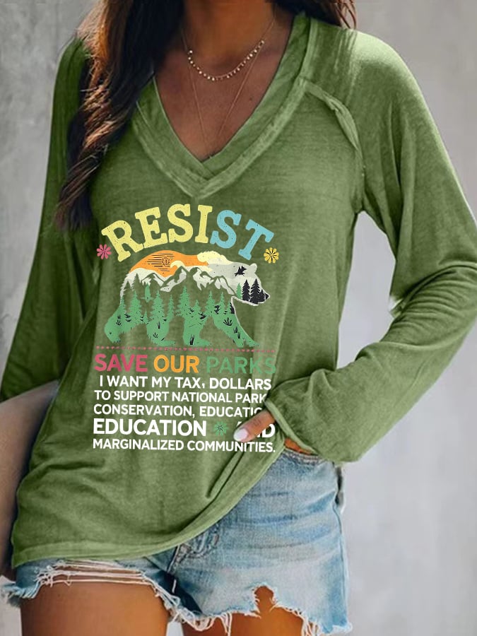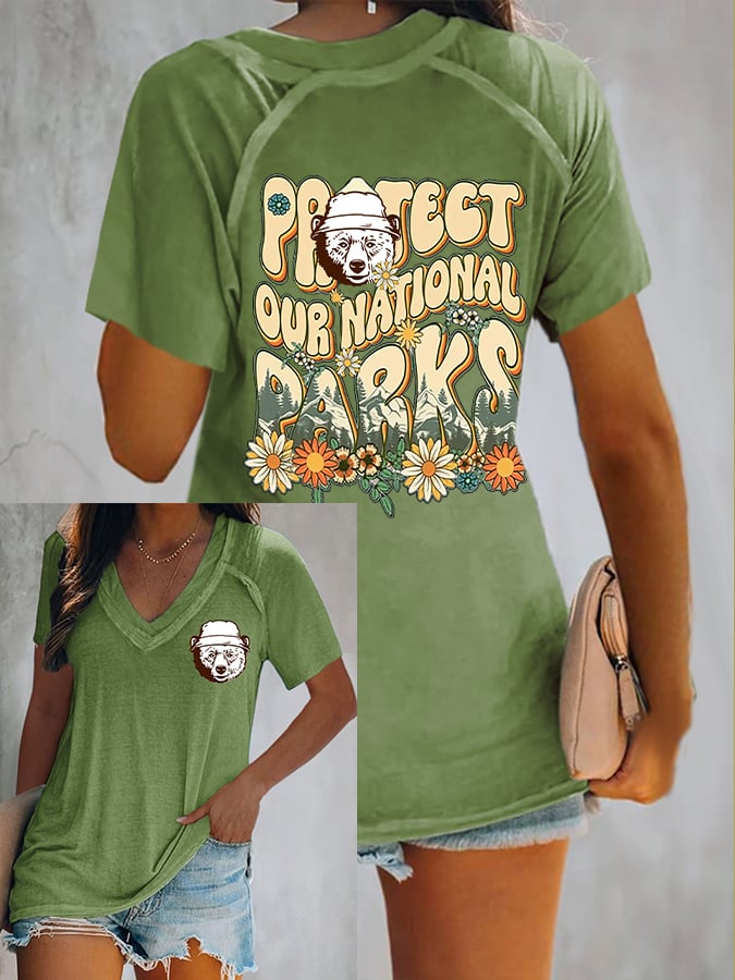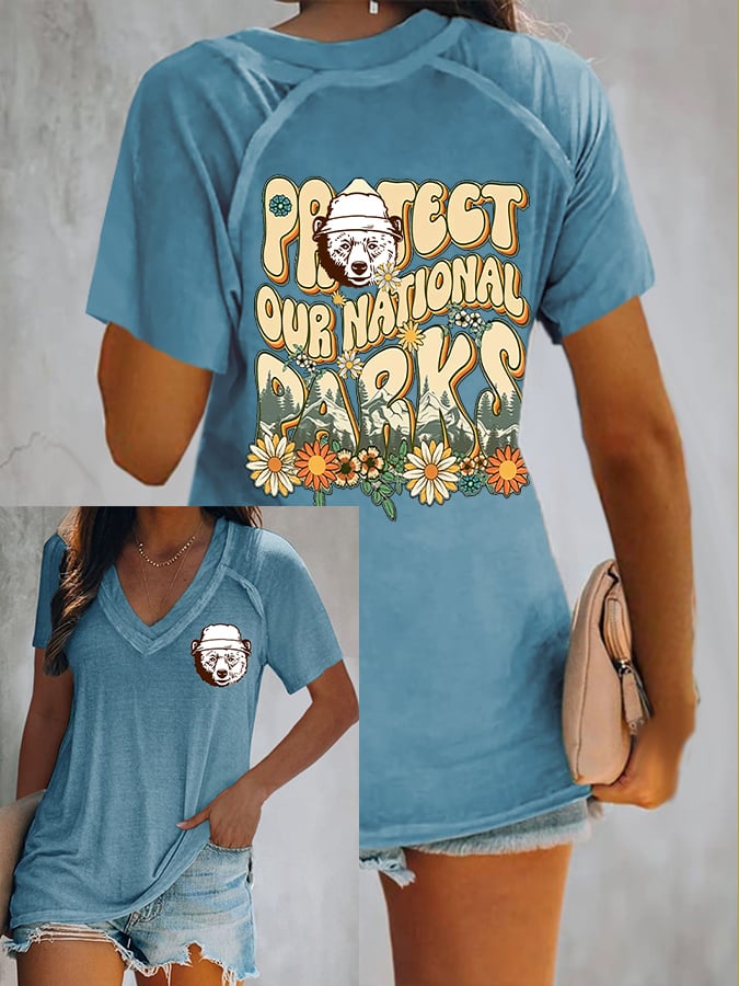 Women's Retro Protect Our National Parks Print V-Neck Shirt