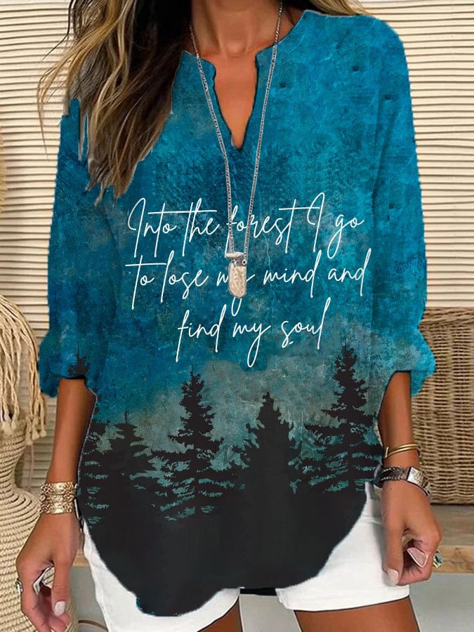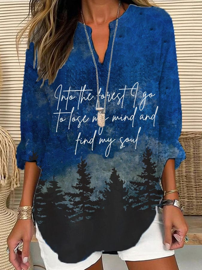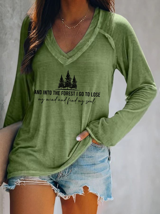 Women's "And Into The Forest I Go, To Lose My Mind And Find My Soul" Forest Floral Print Casual Long Sleeve V Neck Shirt