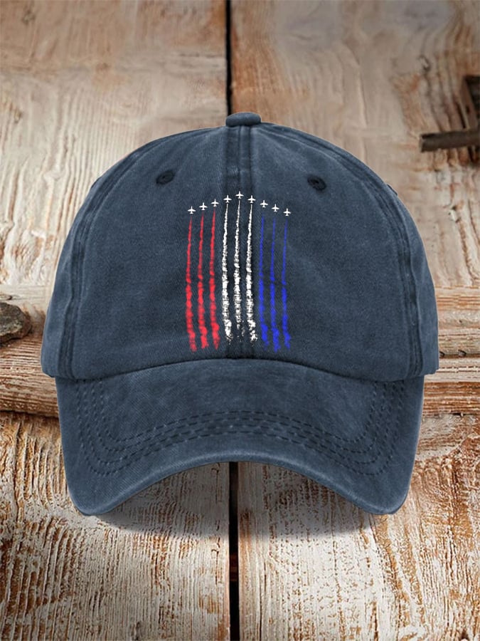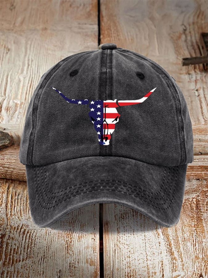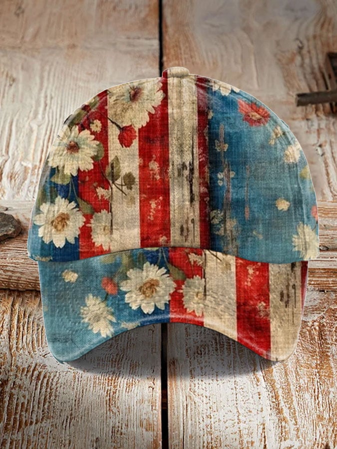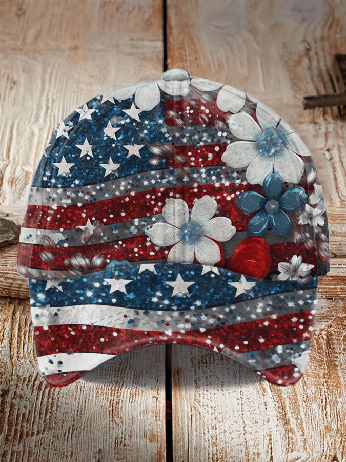 Unisex Distressed Washed Cotton "Independence Day Flag" Printed Hat