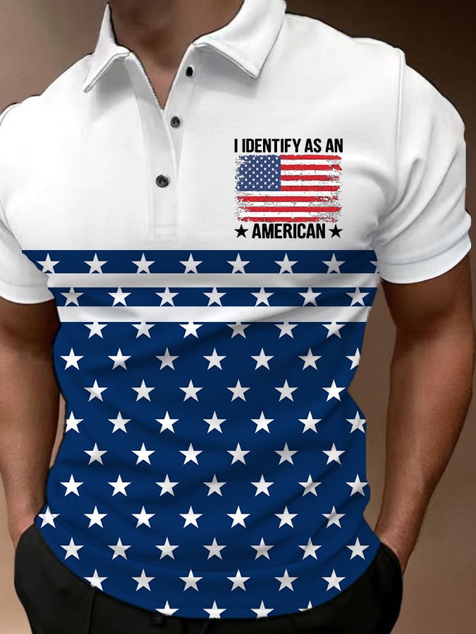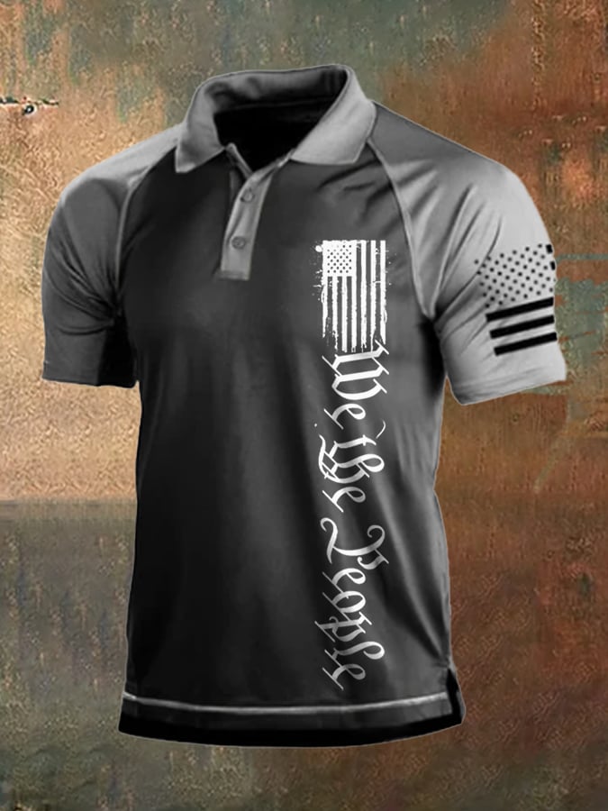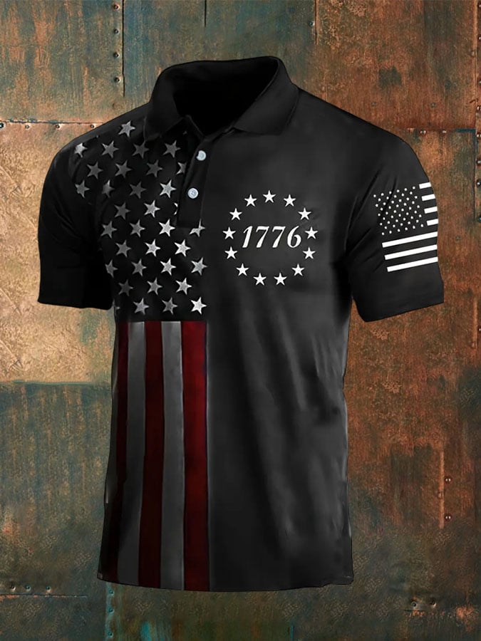 Men's Vintage American Flag Independence Day Color Block Polo Shirt