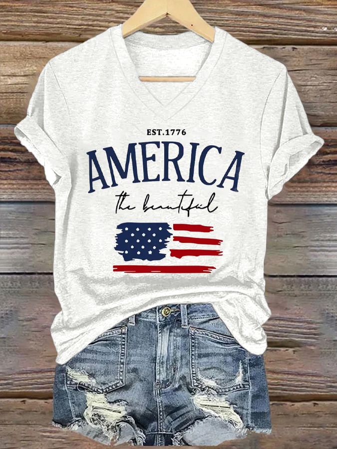 Women's American Flag Independence Day Print V-Neck T-Shirt