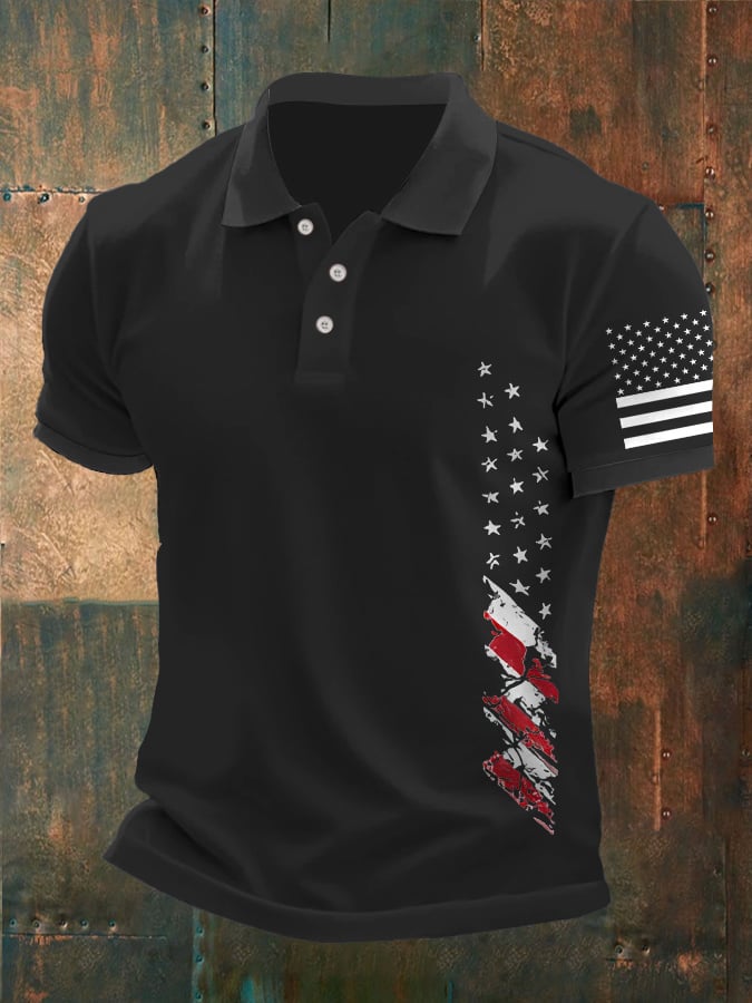 Men's American Flag Independence Day Fireworks Print Casual POLO Shirt