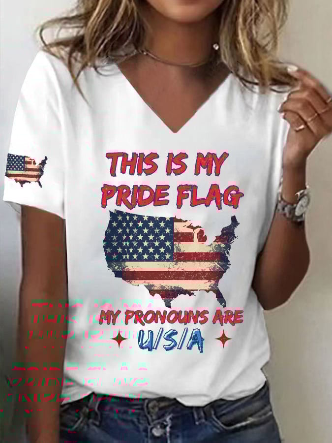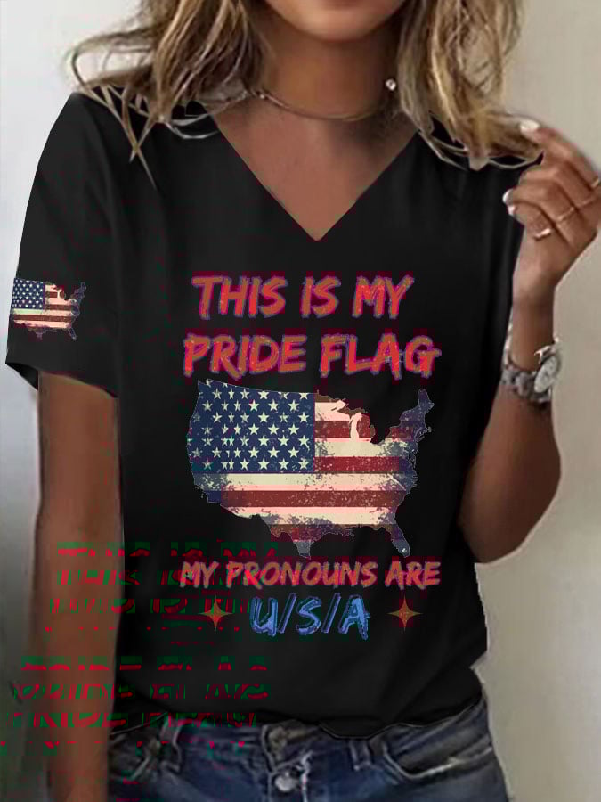 🔥Last Day 49% Off🔥Women's This Is My Pride Flag My Pronouns Are USA Print V Neck T-shirt