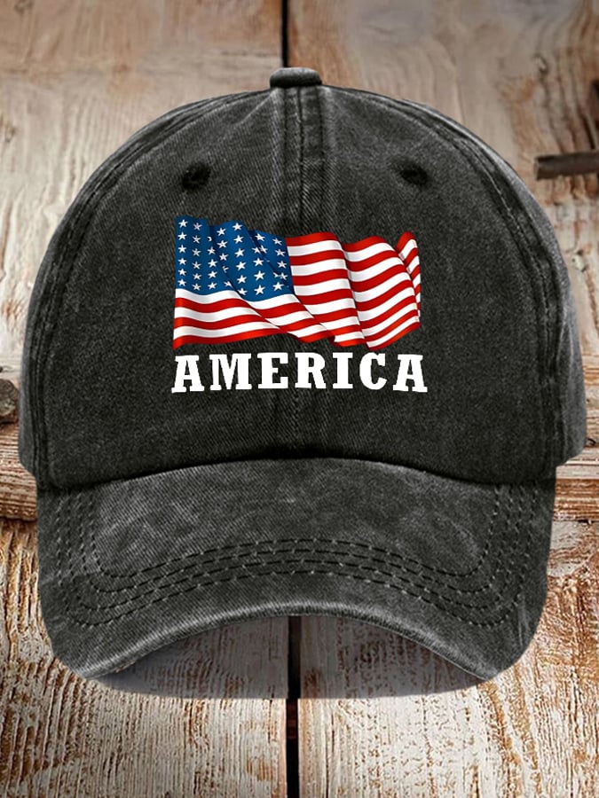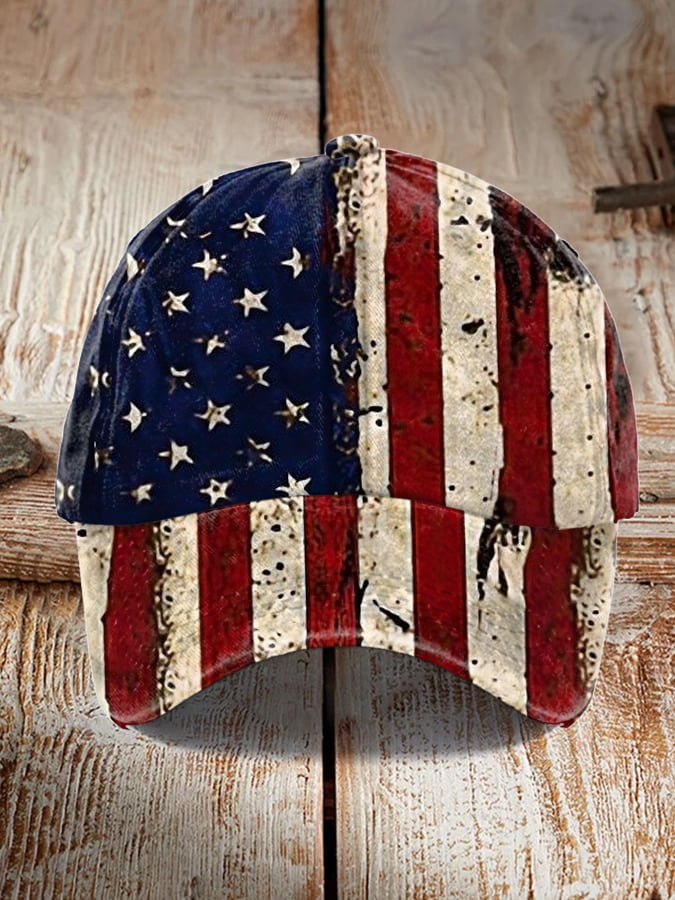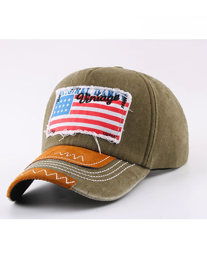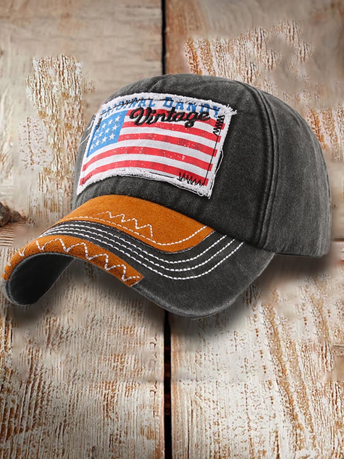Unisex Vintage Distressed American Flag Color Block Hat