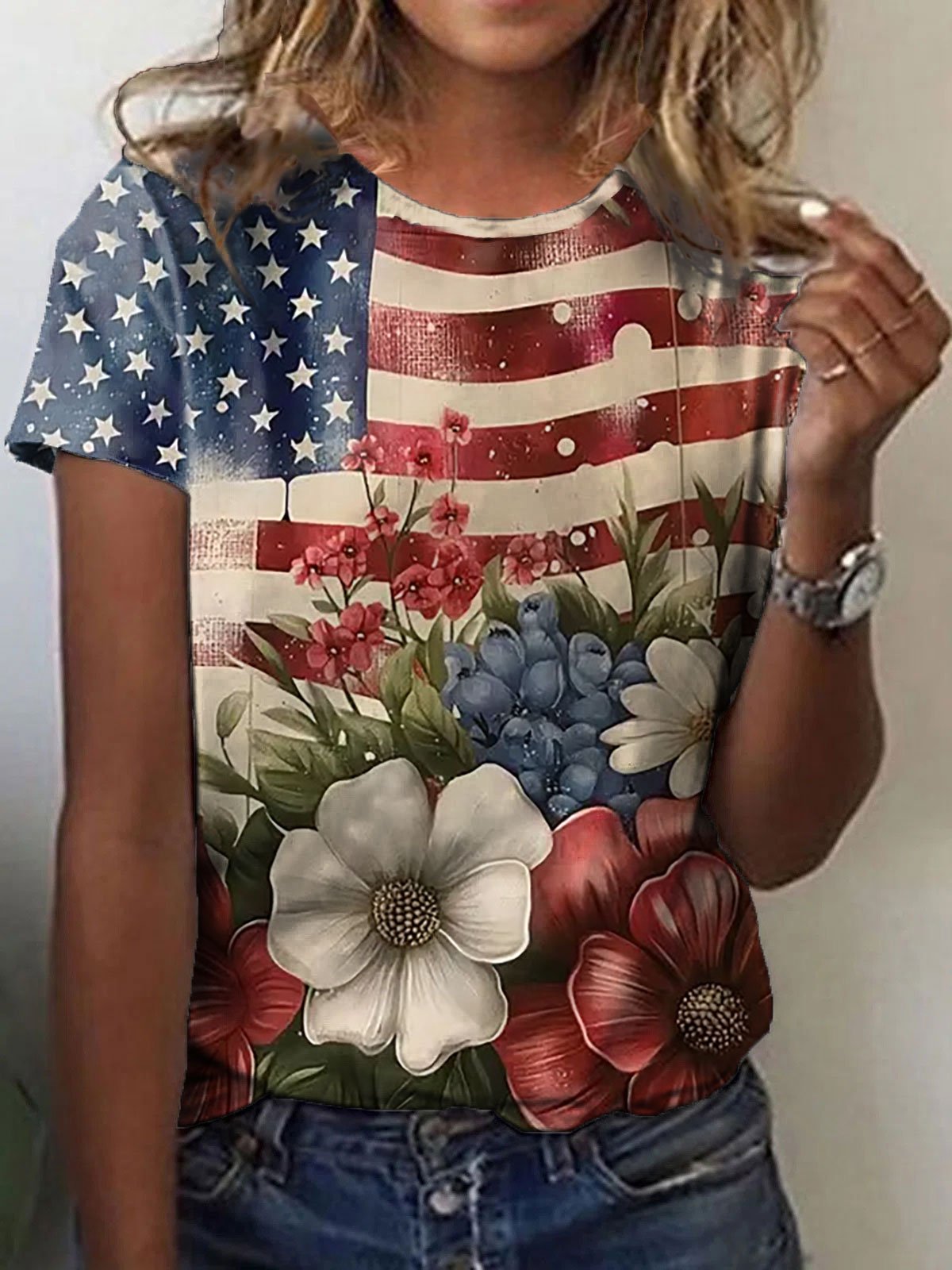 🔥Last Day 49% Off🔥Women's Independence Day Flower Print T-Shirt