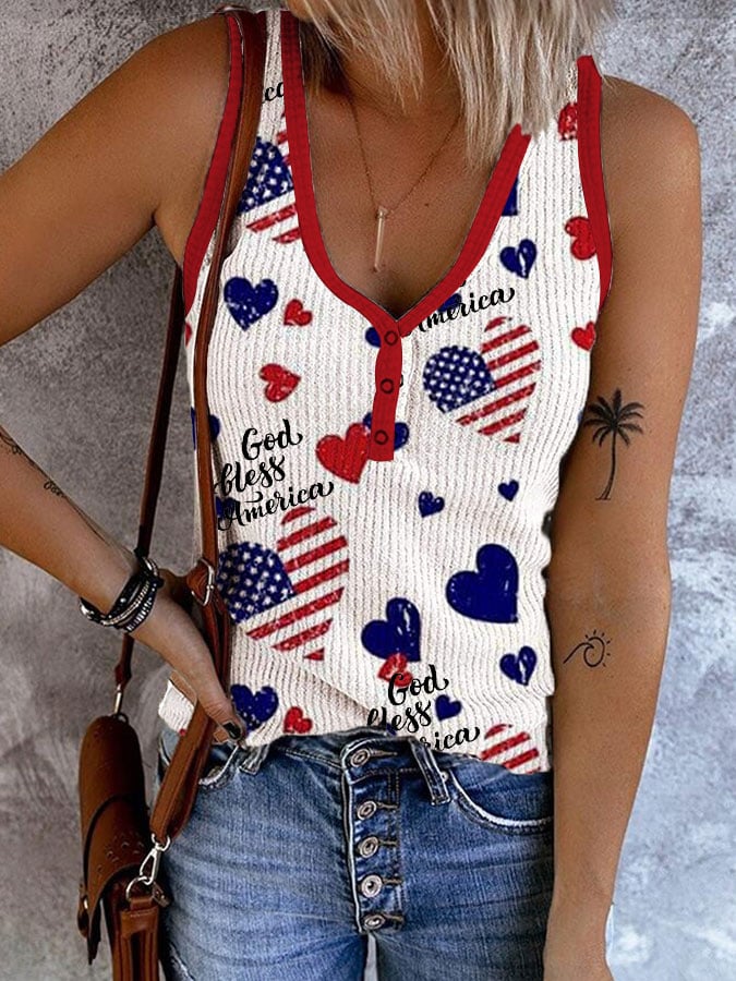 Women's 4th of July Flag God Bless America Print V-Neck Vest