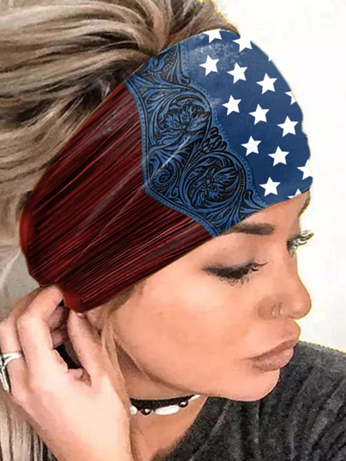 Women'S American Flag Pattern Floral Tassel Art Turban