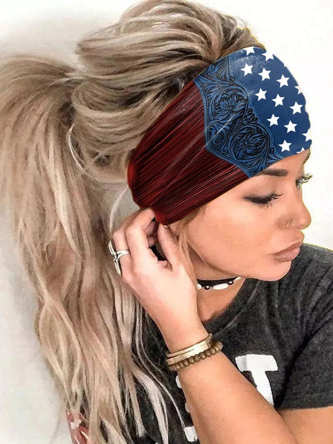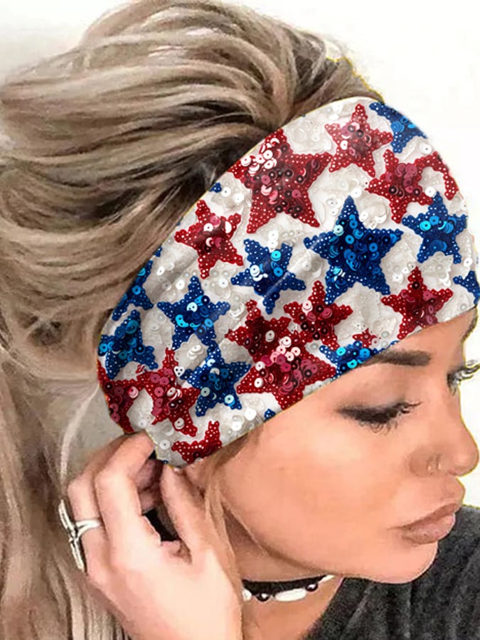 Women's American Flag Stars Glitter Sequin Art Print Turban