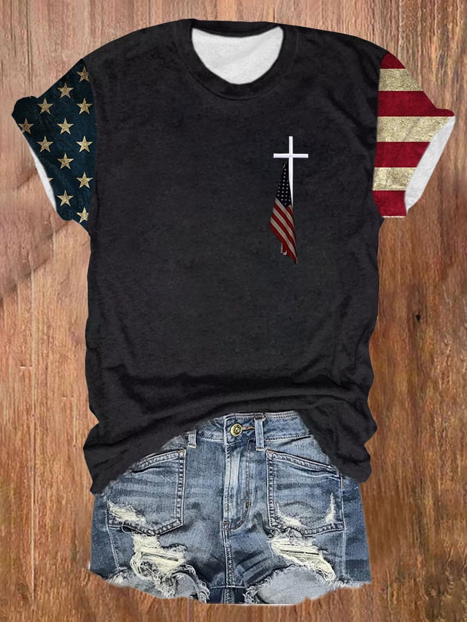 Women's Flag Print Casual T-Shirt