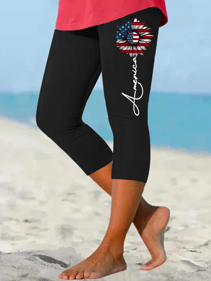 🔥Last Day 49% Off🔥Women's American Flag Sunflower Print Independence Day Cropped Leggings