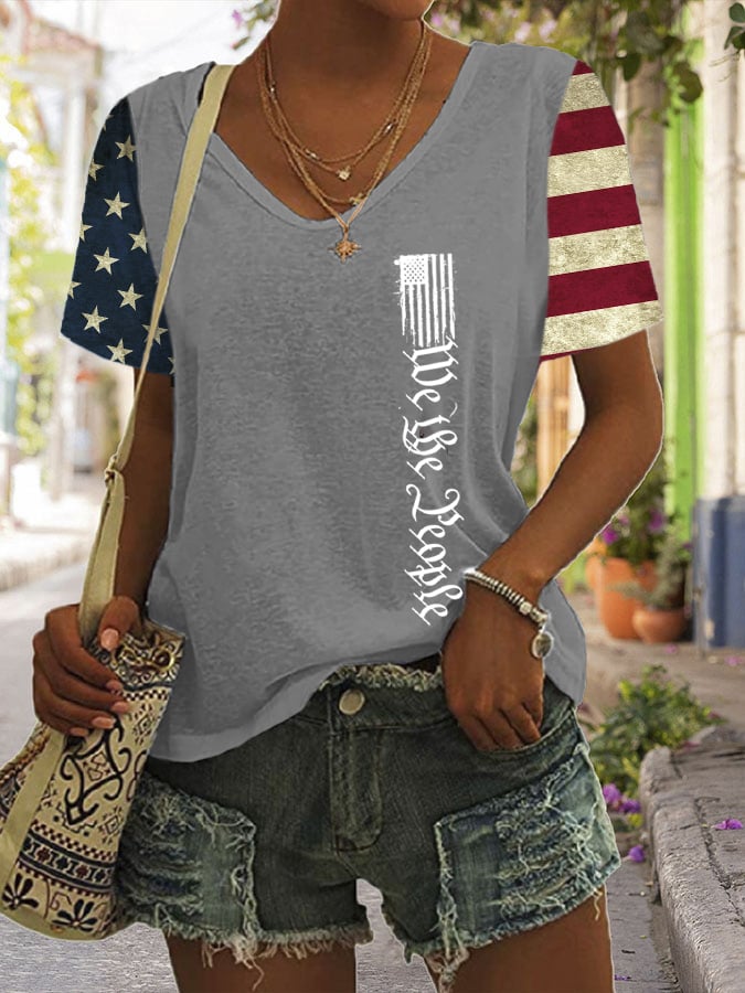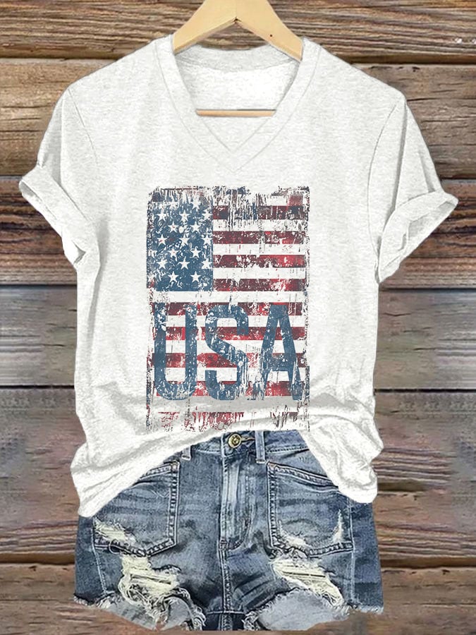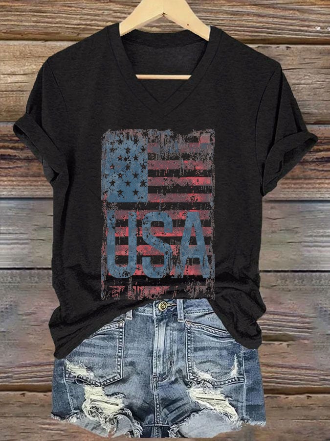 🔥Last Day 49% Off🔥V-Neck Retro Independence Day Flag USA Print T-Shirt