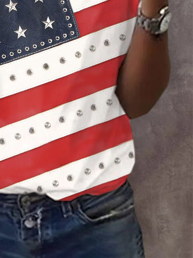 🔥Last Day 49% Off🔥Retro Independence Day Flag Color Block Rivets Print T-Shirt