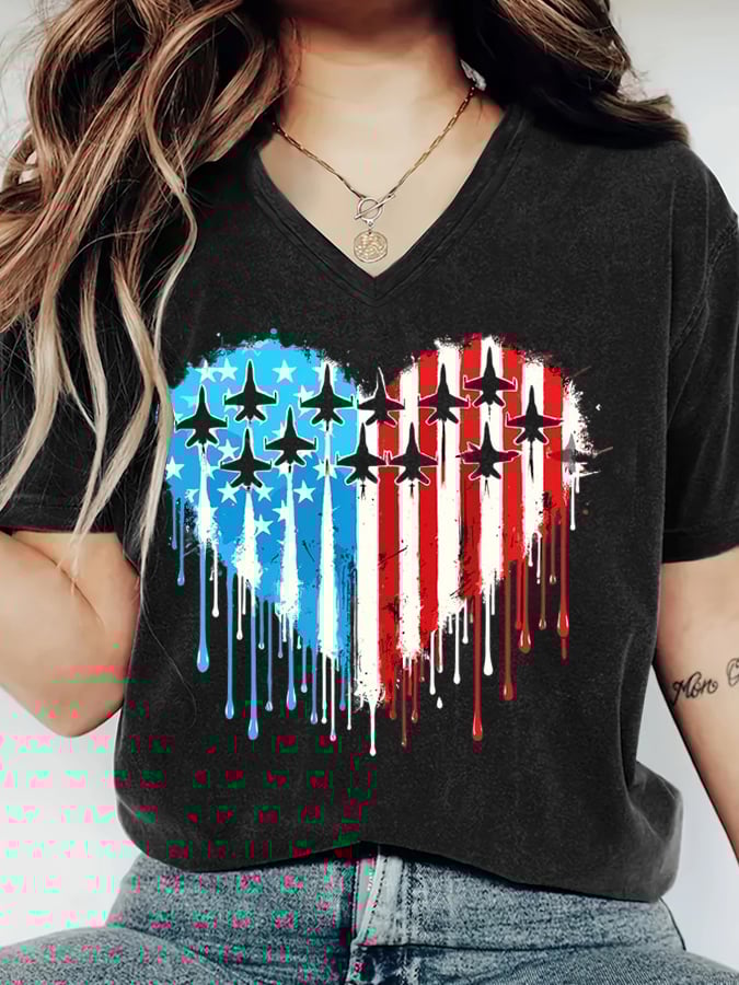 🔥Last Day 49% Off🔥Women's American Flag Jet Fighter Print V-Neck T-Shirt