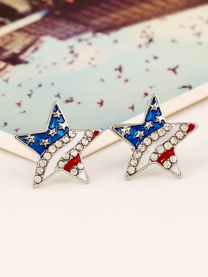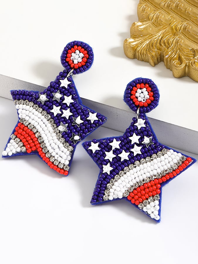🔥Last Day 49% Off🔥Independence Day Creative Five-Pointed Star Diamond And Rice Bead Earrings
