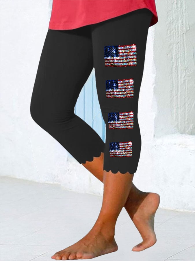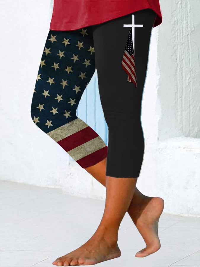 Women's Independence Day American Flag USA Print Leggings