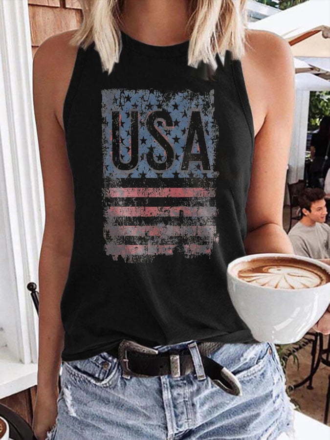 Women's Vintage Flag Independence Day Printed Casual Tank Top