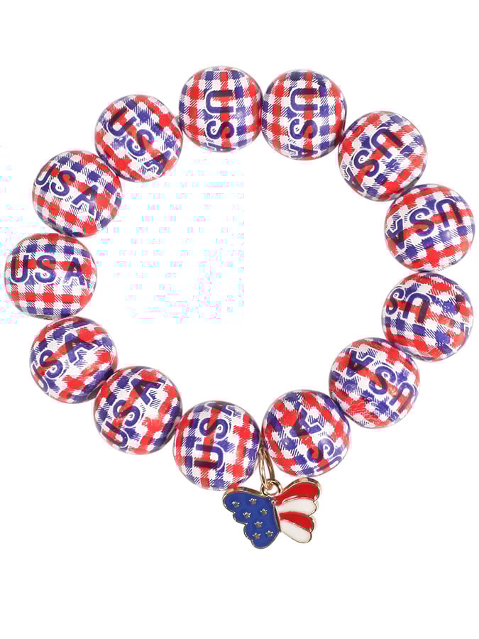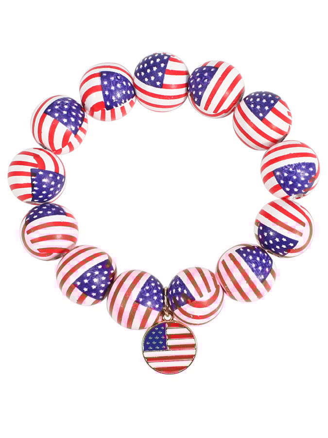 Independence Day Creative American Flag Pattern Beaded Wood Bracelet