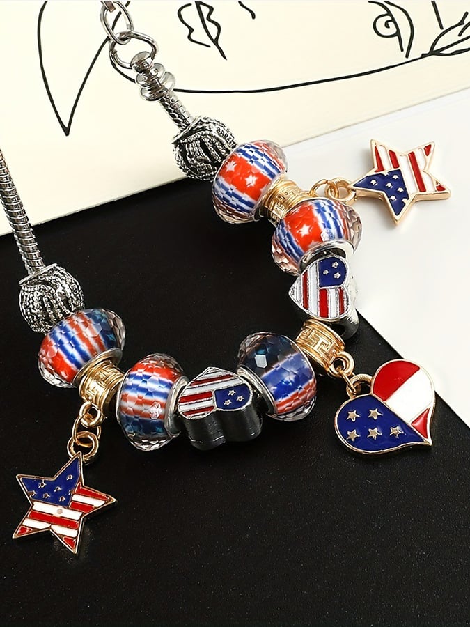 🔥Last Day 49% Off🔥American Flag Independence Day Five-Pointed Star Panjiadora Diy Beaded Bracelet Metal Dripping Jewelry
