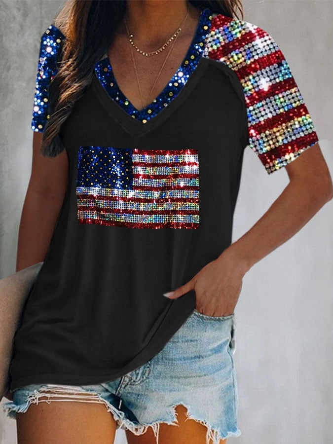 Women's Flag Print Casual T-Shirt