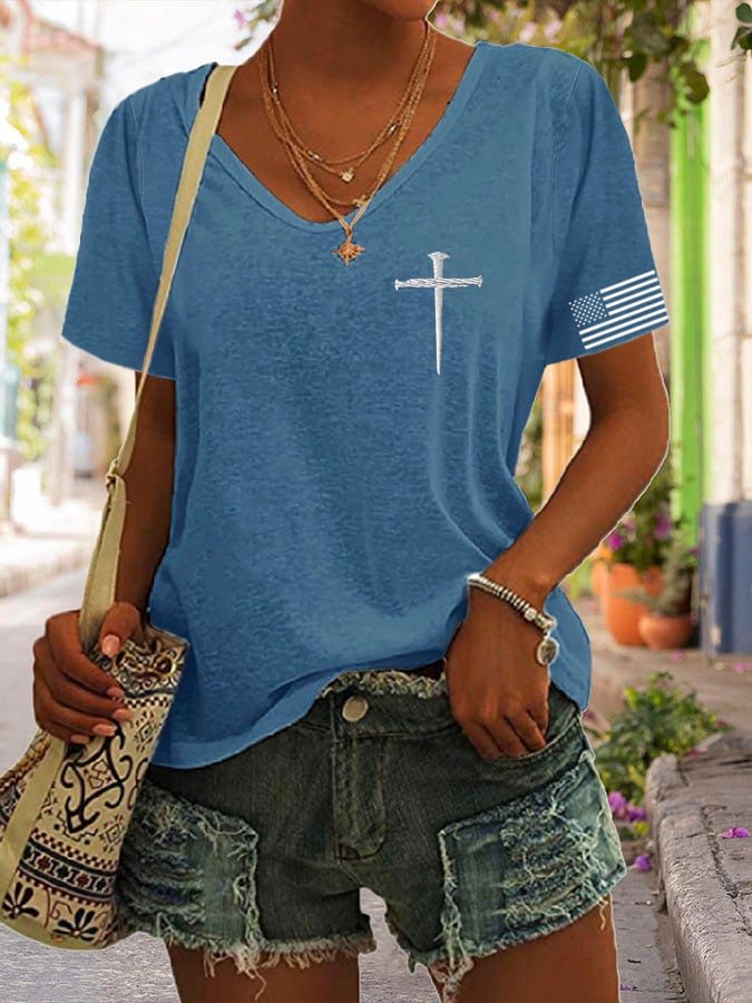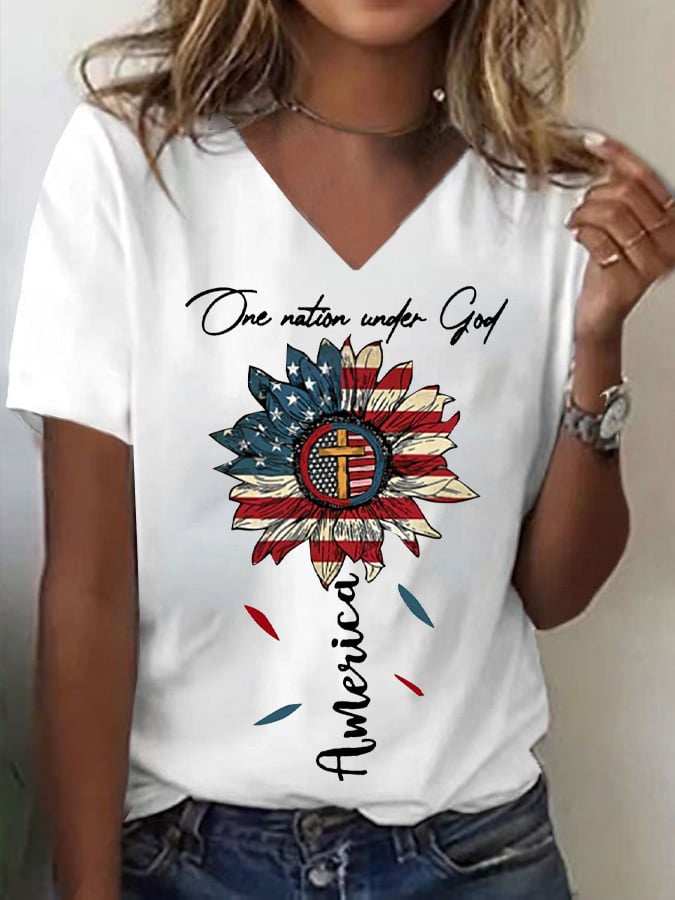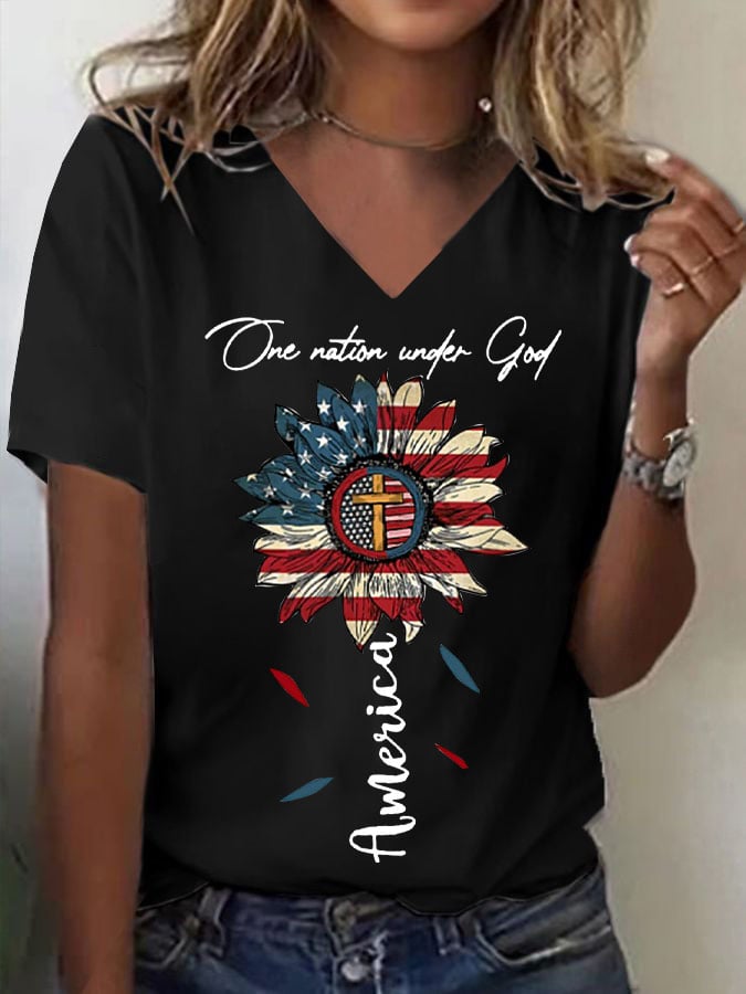 🔥Last Day 49% Off🔥Women's One Nation Under God Print V Neck T-shirt