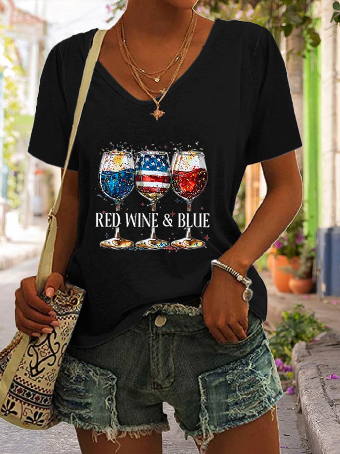 🔥Last Day 49% Off🔥Women's Red Wine & Blue Print T-shirt
