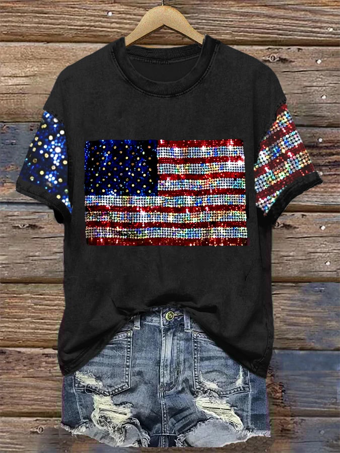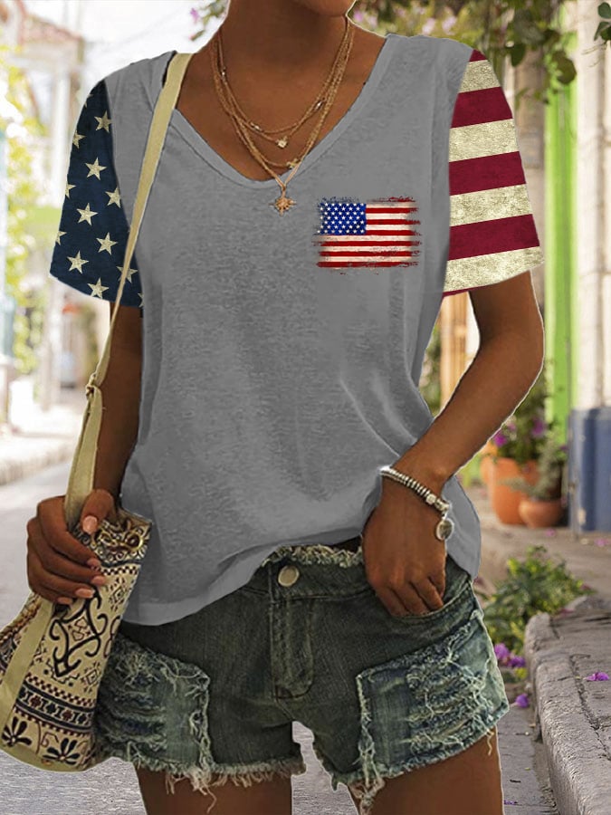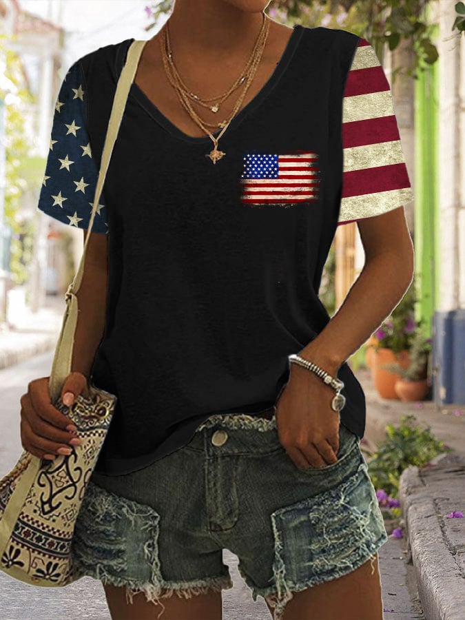 🔥Last Day 49% Off🔥Women's Flag Print Casual T-Shirt