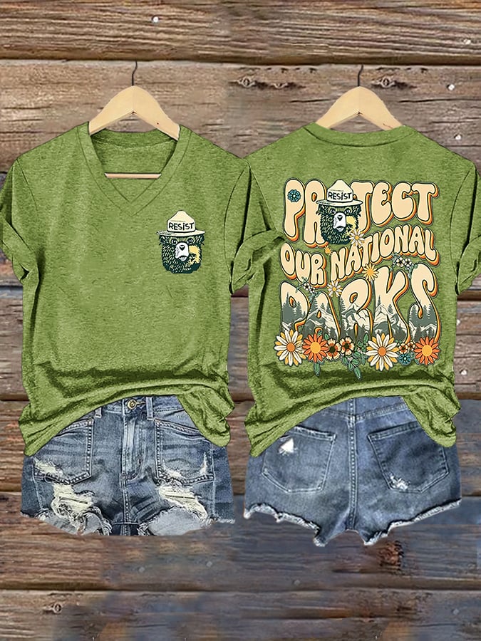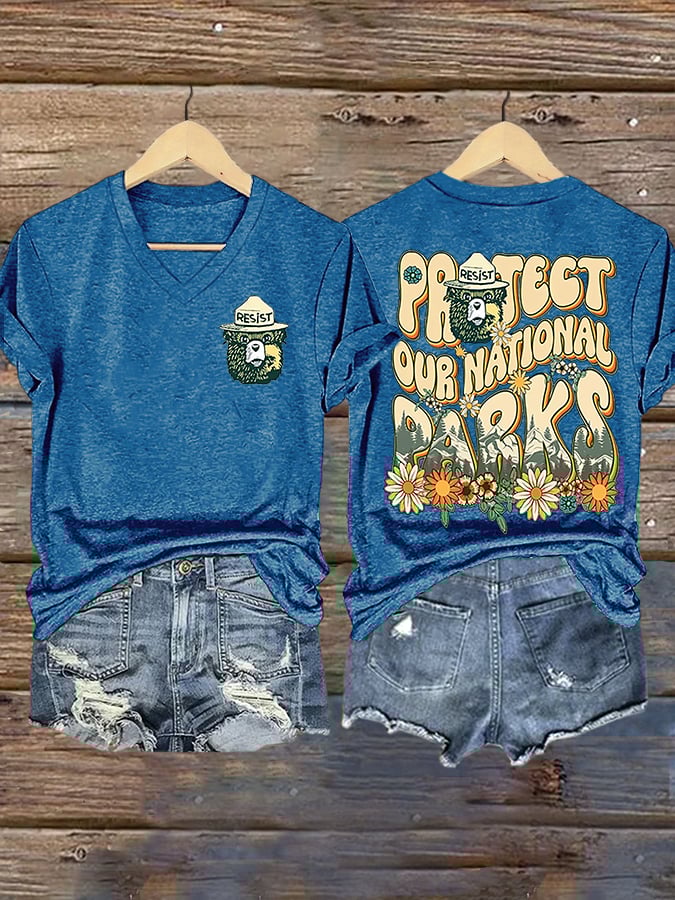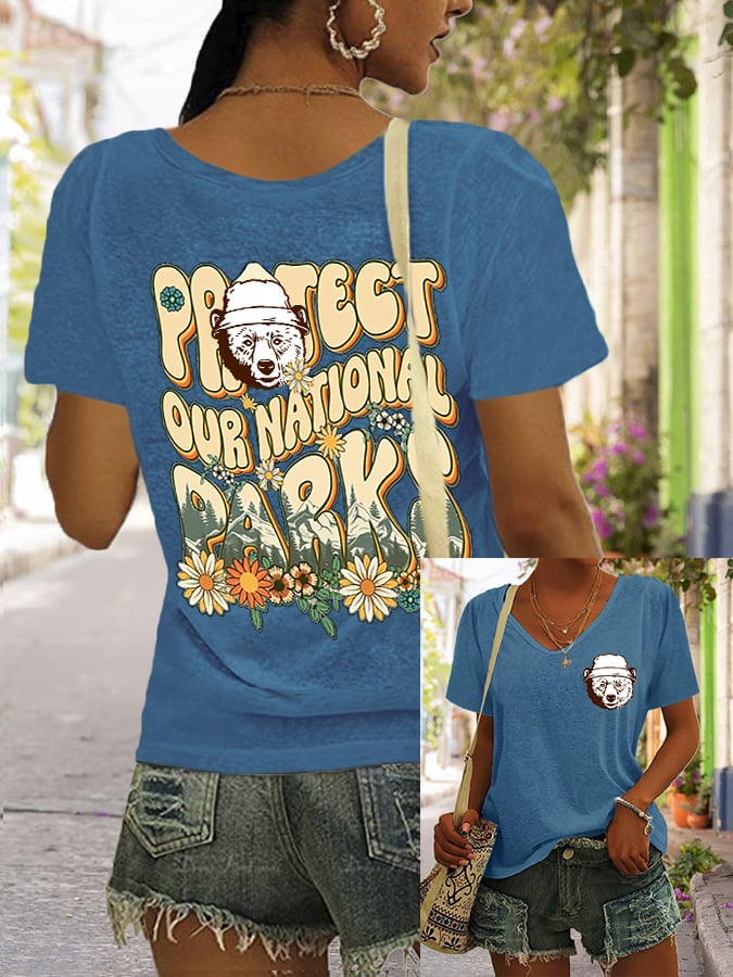 Women's Support National Parks Print V Neck Casual T-Shirt