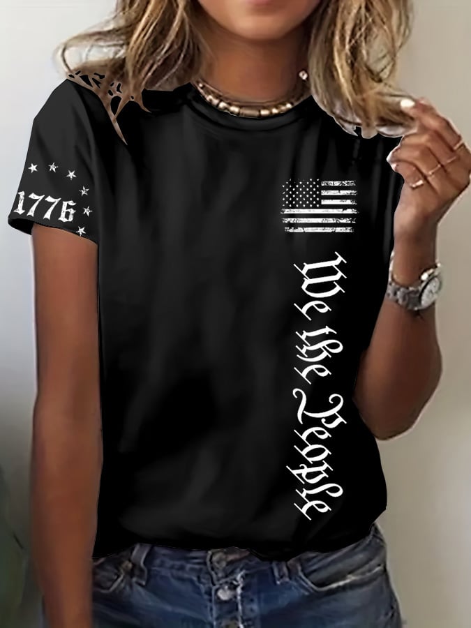 🔥Last Day 49% Off🔥Women's We The People Independence Day Printed Casual Collar T-Shirt