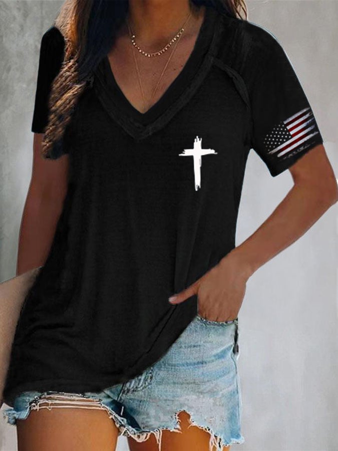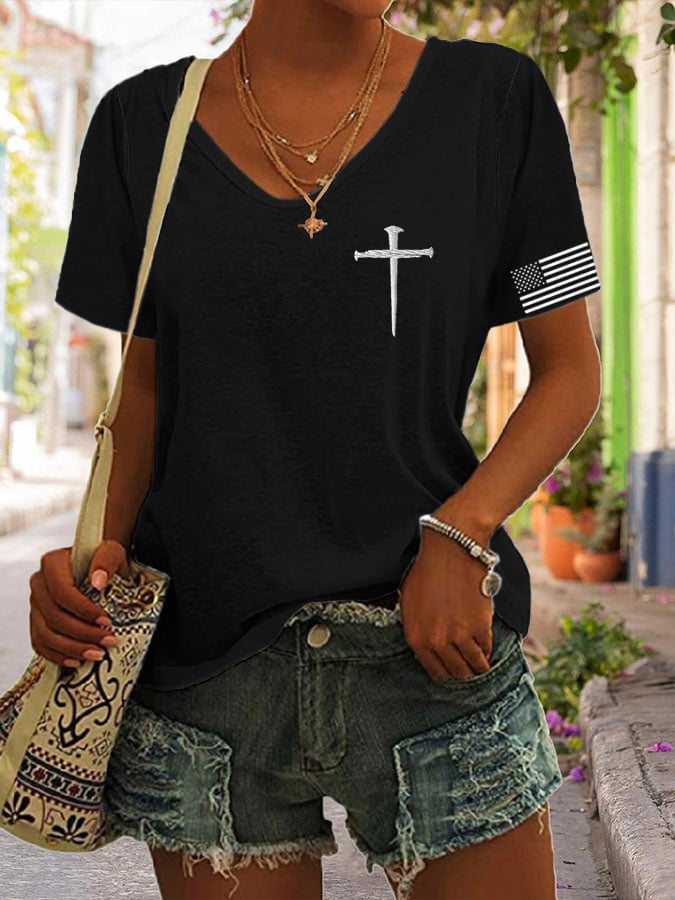 🔥Last Day 49% Off🔥Women'S Flag Cross Print T-Shirt