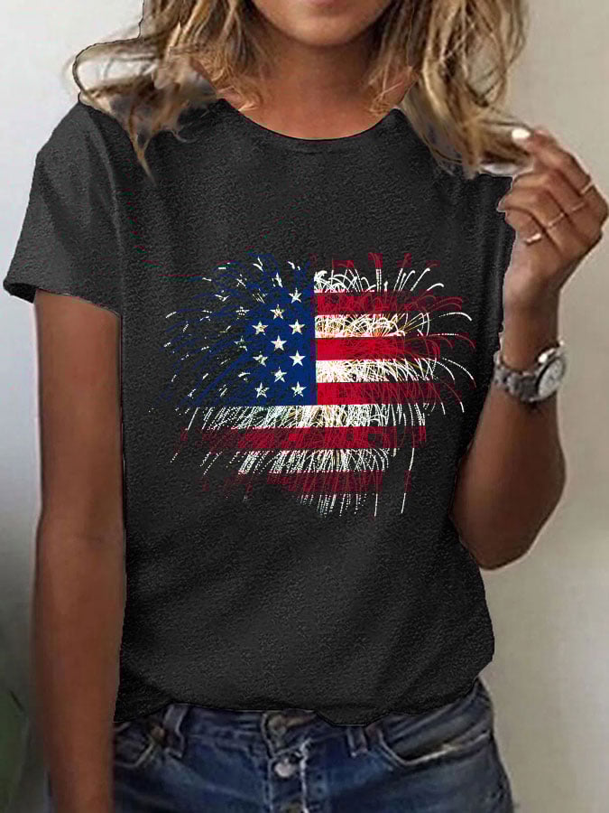 🔥Last Day 49% Off🔥Women's Independence Day Love Fireworks Flag Print T-Shirt