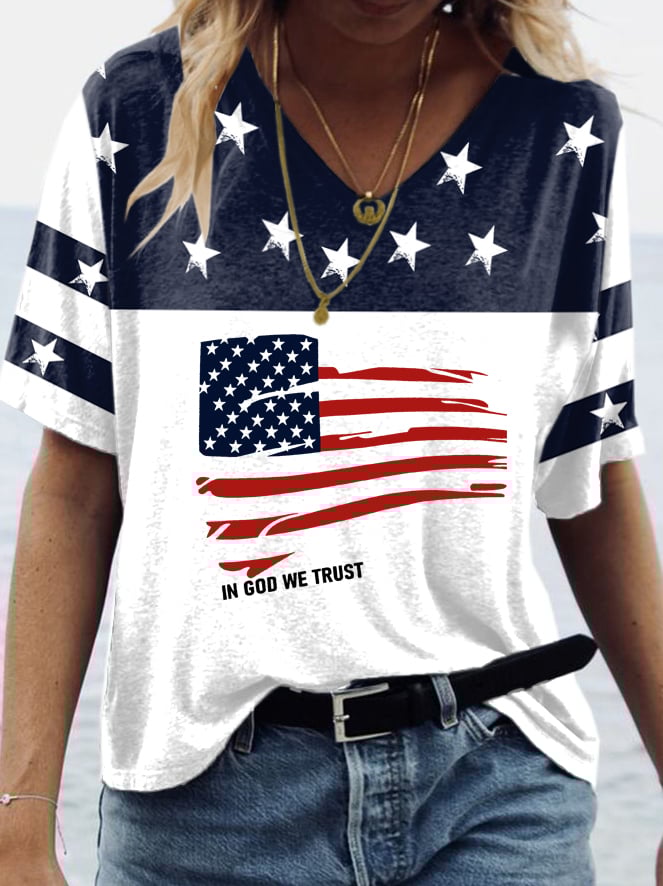 🔥Last Day 49% Off🔥Women's In God We Trust American Flag Print T-Shirt