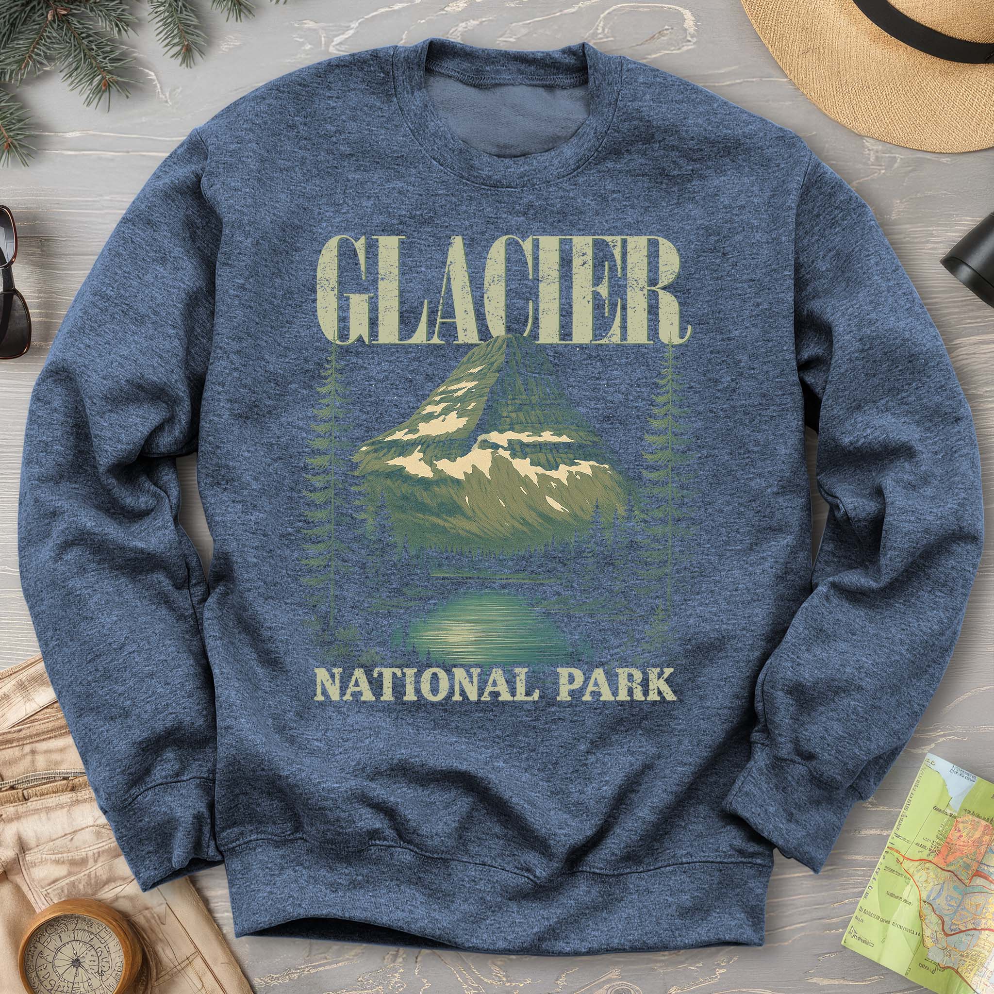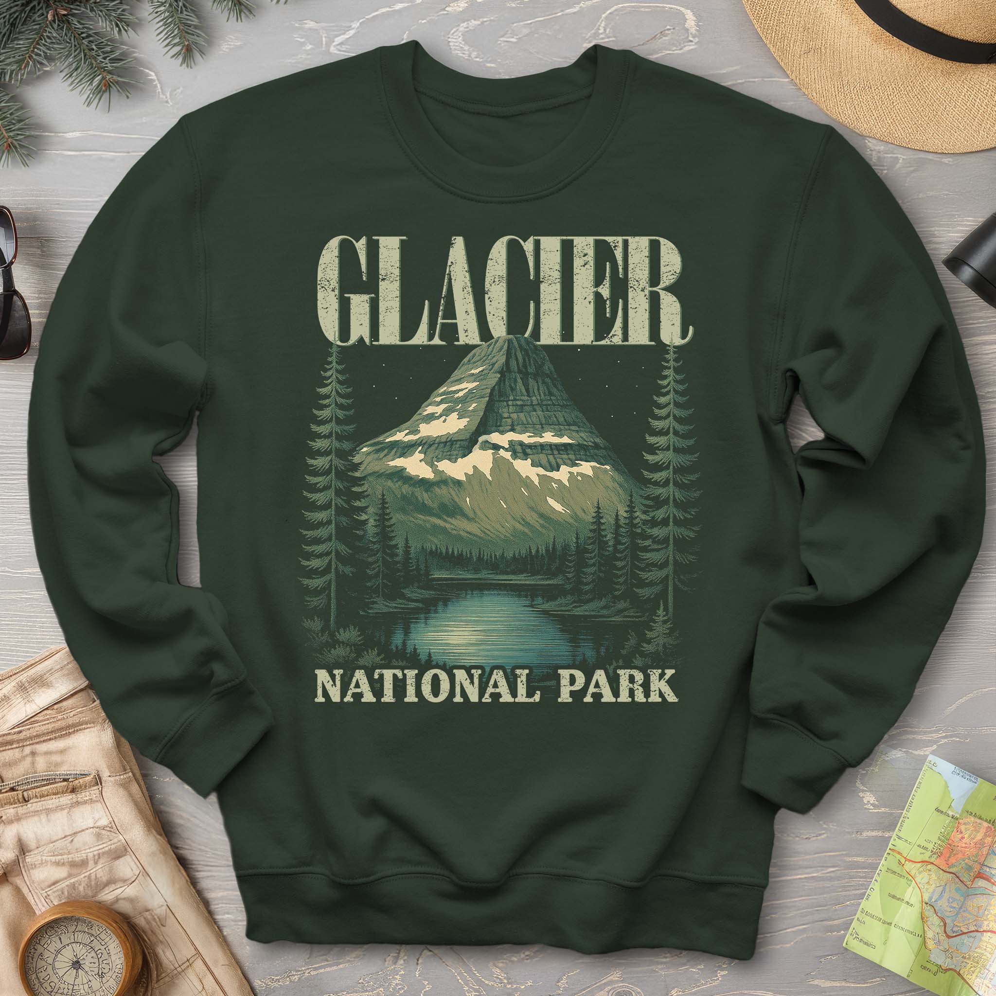 Show off your love of Montana and its majestic stretch of the Rocky Mountains with our Glacier National Park Sweatshirt! This comfy crewneck makes a great family vacation trip shirt, and is all about embracing the great outdoors! It features a custom vintage design that showcases the beauty of the Rockies and the unique spire peak of Bearhat Mountain! The Gildan 18000 50/50 blend fabric has that comfy, lived-in feel, that's like a hug every time you put it on! Now you can take a bit of Glacier with you wherever you go! Grab one now and hit the trail!
