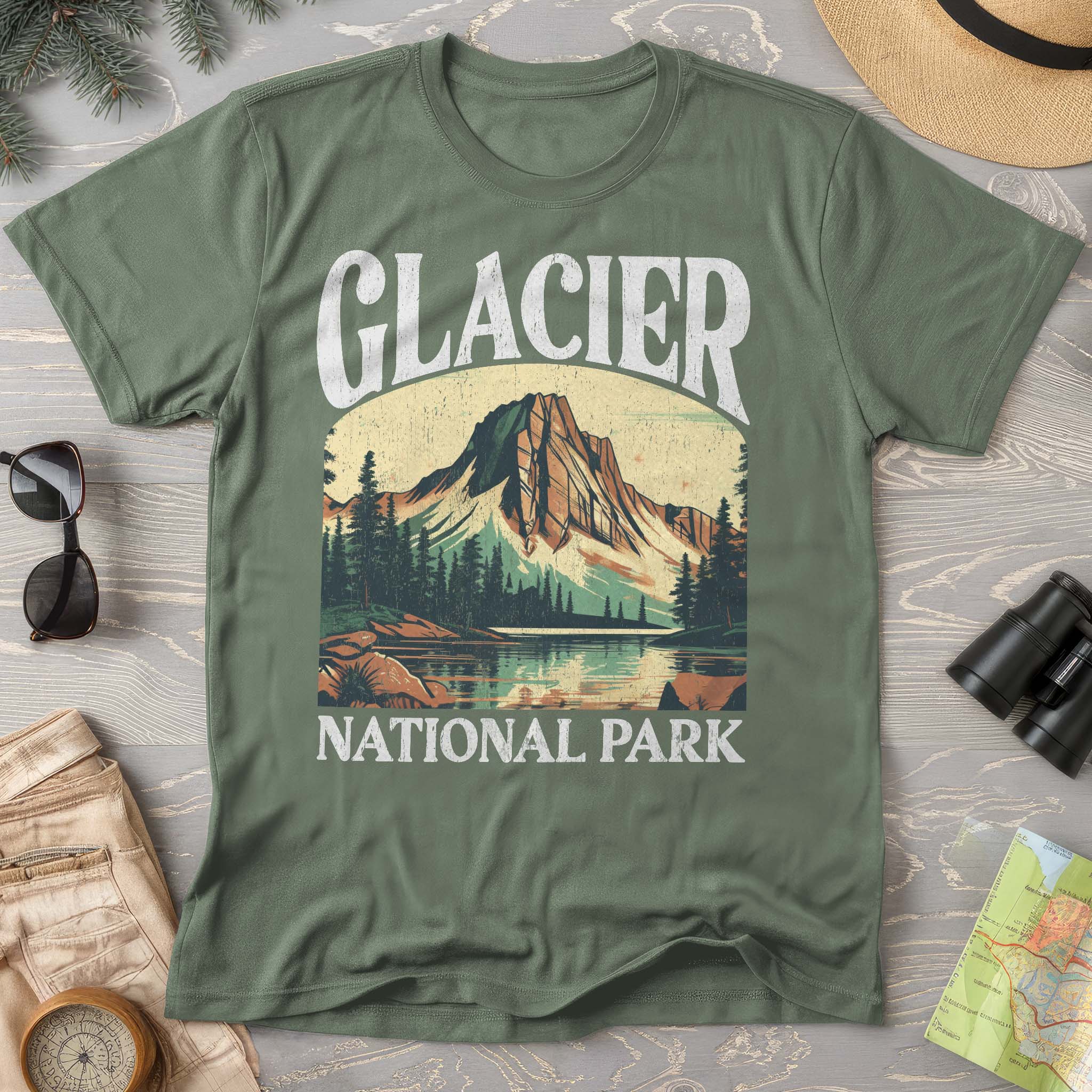 Show off your love of Montana and its majestic stretch of the Rocky Mountains with our Glacier National Park Shirt! This shirt makes a great family vacation trip shirt, and is all about embracing the great outdoors! It features a custom vintage design that showcases the beauty of the Rockies and the unique spire peaks that Glacier National Park is famous for! The "comfort colors" garment-dyed vintage cotton fabric has that comfy, lived-in feel, that's like a hug every time you put it on! Now you can take a bit of Glacier with you wherever you go! Grab one now and hit the trail!