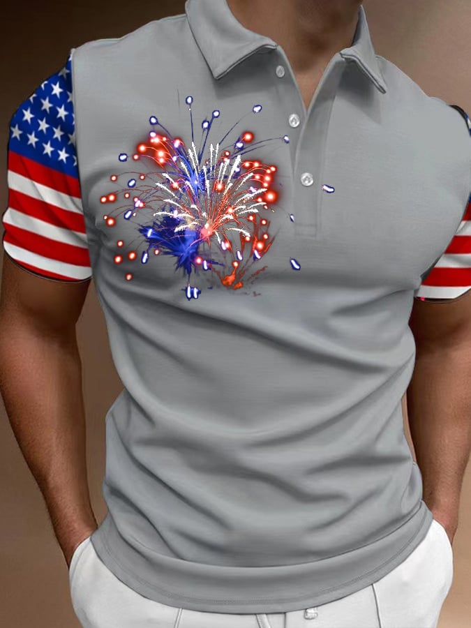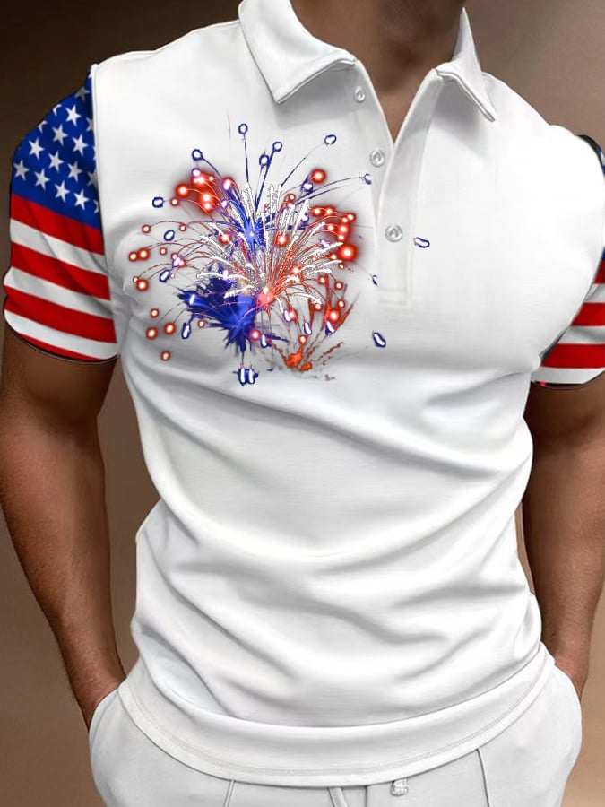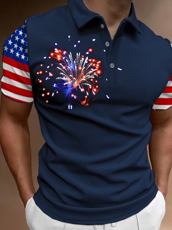 Men's American Flag Independence Day Fireworks Print Casual POLO Shirt