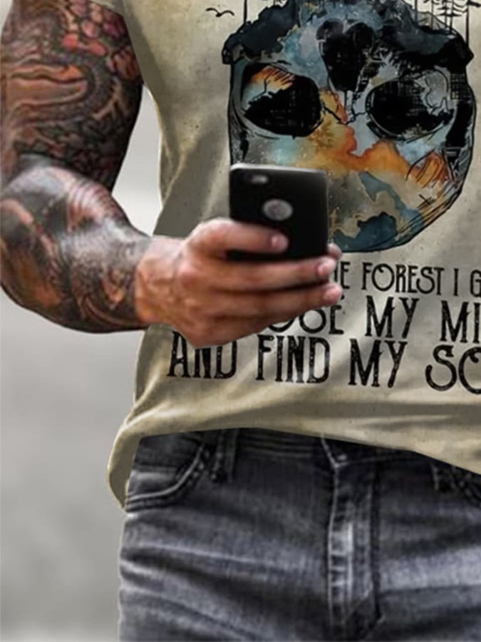 Men's Casual Fashion National Park Forest Skull Print T-Shirt