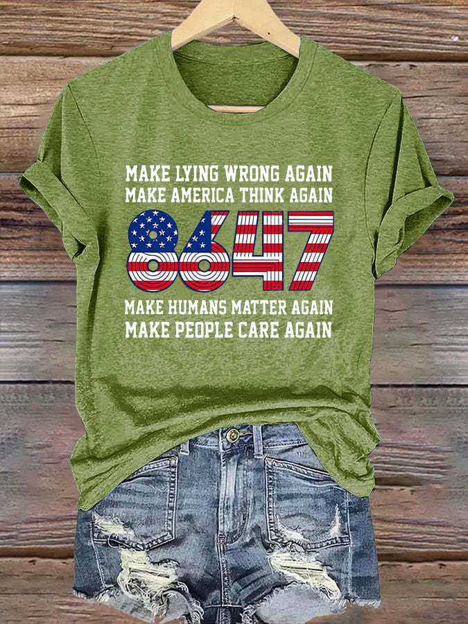 Retro 8647 Make Lying Wrong Again Make America Think Again Make Humans Matter Again Make People Care Again Print T-Shirt