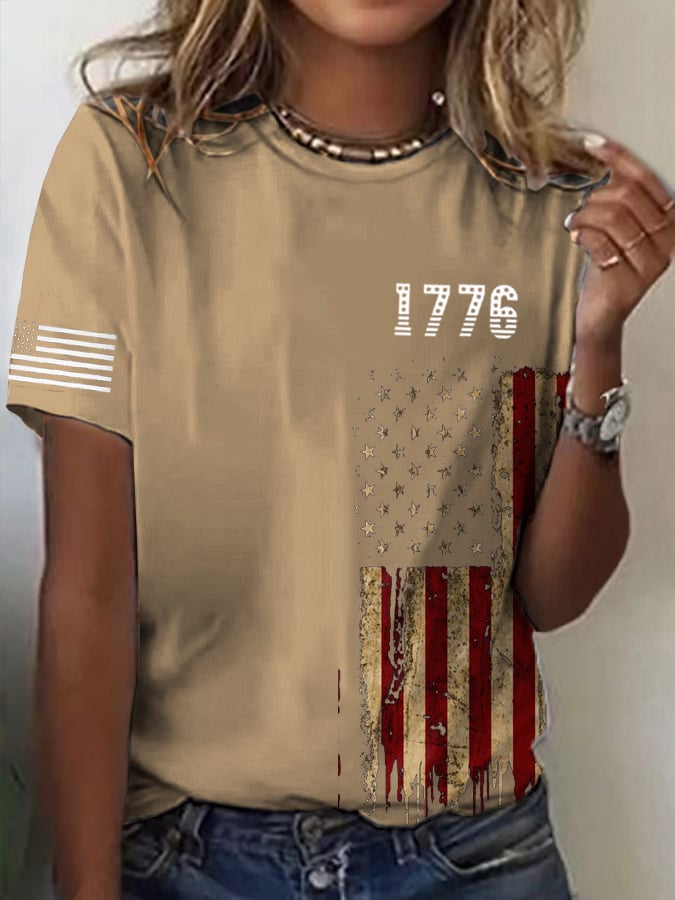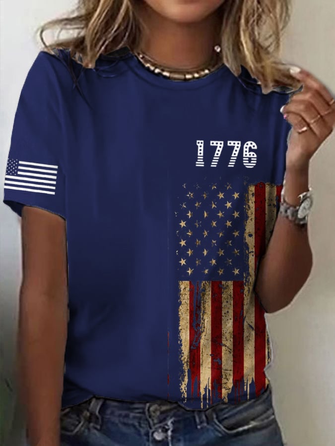 Women's 4th July Chicken Print Round Neck T-Shirt